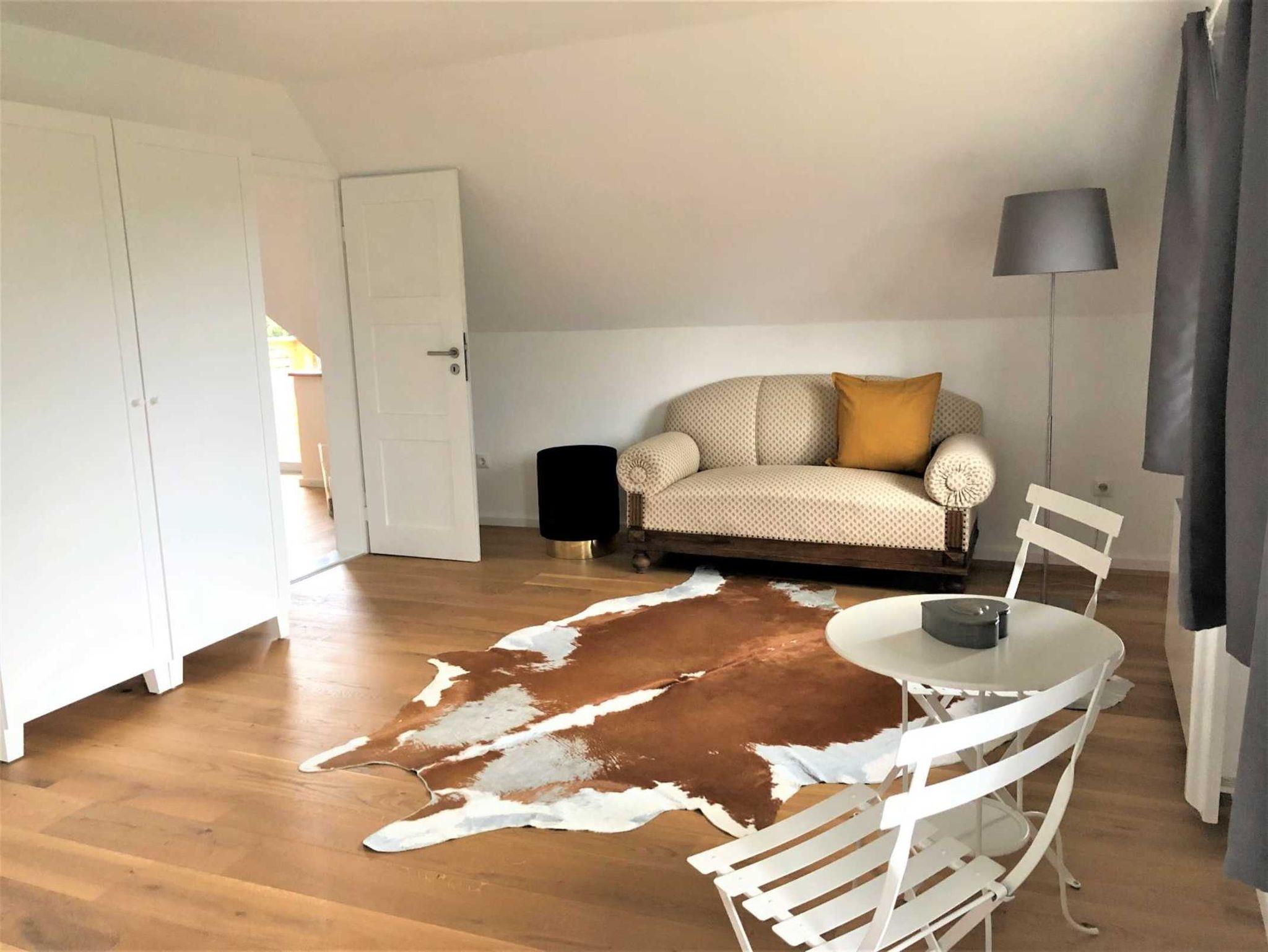 Sie haben direkten Zugang vom Wohnbereich in den Garten und auf den großen Balkon, welche zum Entspannen und Verweilen einladen. Hier können Sie den Tag bei einem Glas Wein oder gutem Essen ausklingen lassen.