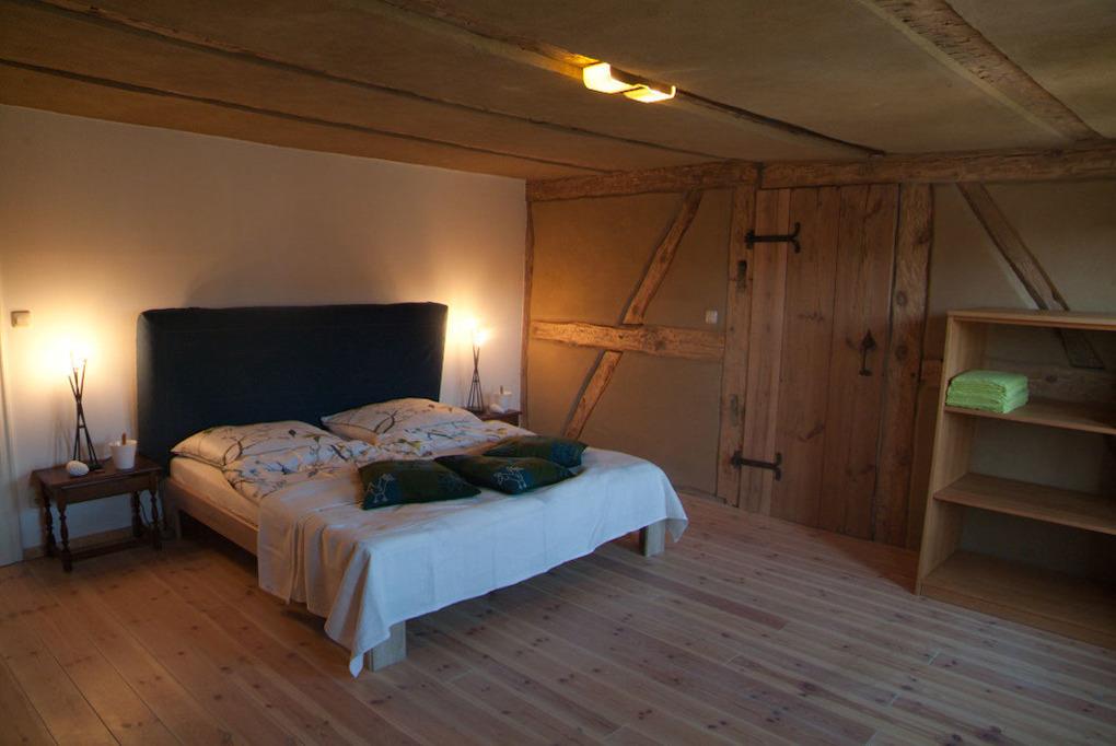 Hervorragend geeignet für Familienurlaub und große Gemeinschaft oder Freunde bis zu 13 Personen. Ausstattung mit Küche, Kamin, großem Garten, Zimmern auf 2 Etagen, Kinderspielecken, Ruhebereiche, Bibliothek und Couch für gemeinschaftliches Miteinander. Dort wo am Morgen die Vögel beim Frühstück zwitschern und sternenklare Nächte die Unendlichkeit des Universums verraten, dort finden Sie Ihre persönlichen Glücksmomente – pure Lust am Leben, Entspannung und Erholung. ,Ökologische Baustoffe, Lehm und alte Substanz, gepaart mit zeitgemäßen Komfort garantieren ein rundum Wohlfühlen.
