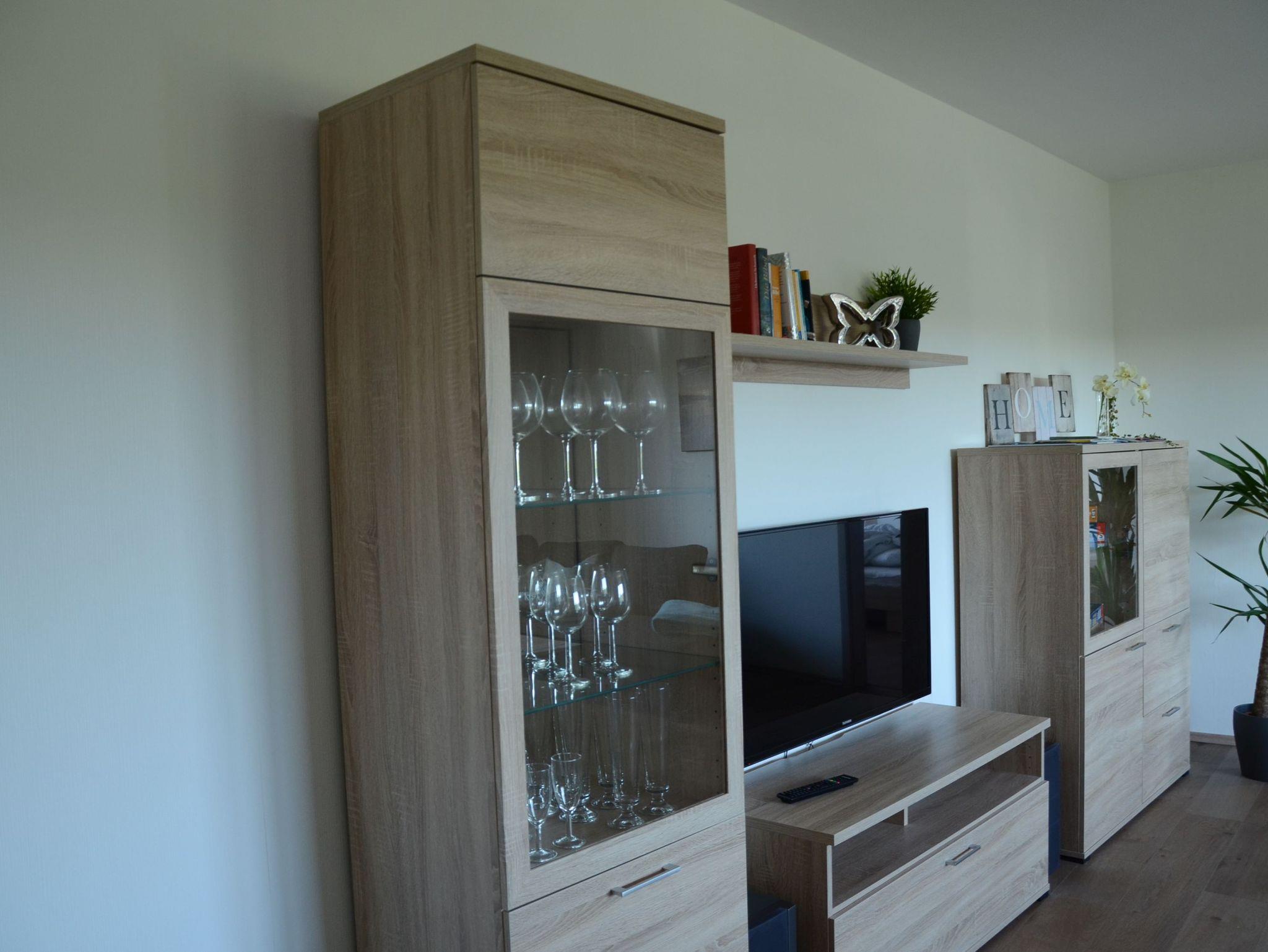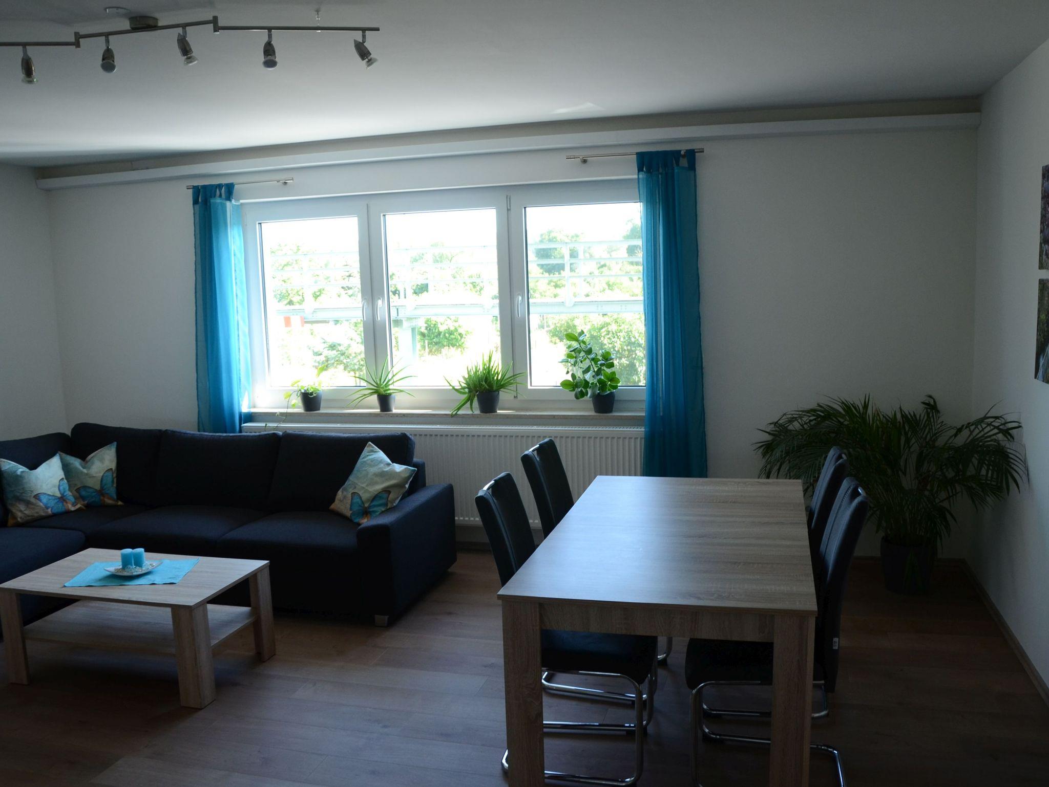 Unsere geräumige (ca. 80 qm große) Wohnung befindet sich im Obergeschoss des Hauses (daher leider nicht barrierefrei) und ist liebevoll, modern eingerichtet. Das Wohn-/Esszimmer ist ausgestattet mit einem großen LED-Fernsehgerät, einem geräumigen Sofa mit Ausziehfunktion und schönem Mobiliar/Dekoration. Das Schlafzimmer ist mit einem kleinen Flach-TV sowie Tresor ausgestattet und ist mit ca. 30 qm überaus geräumig. Die Küche ist vollausgestattet mit Kochecke, Backofen, Kühl-/Gefrierschrank und einer Spülmaschine und allen notwendigen Küchenutensilien. Im Bad finden sich eine begehbare Dusche, eine Toilette und ein moderner Waschtisch inkl. Föhn. Die Speisekammer .... die musste so übernommen werden - die spricht einfach für sich !!!