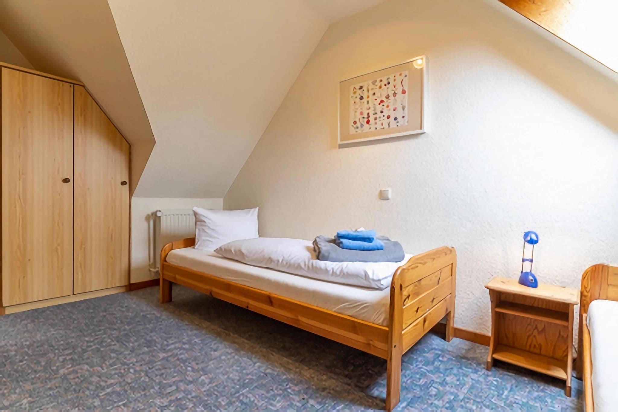 In der 1. Etage: (Küche(Toaster, Kochherd(4 Kochplatten, Ceranfeld), Kaffeemaschine, Backofen, Spülmaschine, Kühl-/Gefrierkombination), Wohn/Esszimmer(TV, Esstisch, Kaminofen, Sitzecke, Radio), Badezimmer(Dusche, Waschbecken, Toilette)) In der 2. Etage: (Schlafzimmer(Doppelbett(180 x 200 cm)), Schlafzimmer(Einzelbett(90 x 200 cm), Einzelbett(90 x 200 cm))) Balkon, Heizung, Garten(Gemeinschaftliche Nutzung mit anderen Gästen), Fahrradabstellraum, Grill(Gemeinschaftliche Nutzung mit anderen Gästen), Parkplatz, Wäschepaket inklusive