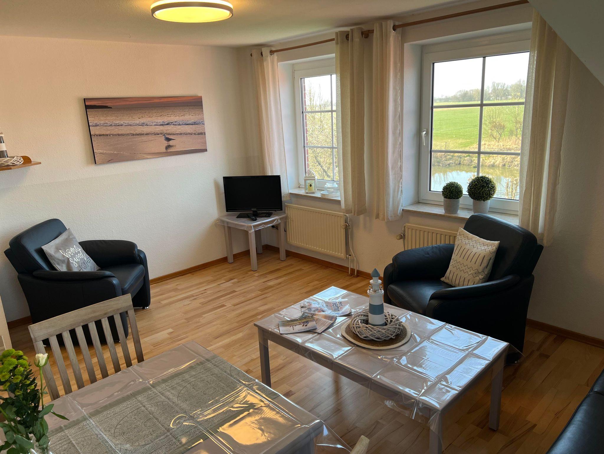 Moderne Ferienwohnung Silbermöwe am Nordseedeich in Vollerwiek mit Familienfreundlichkeit und WLAN.