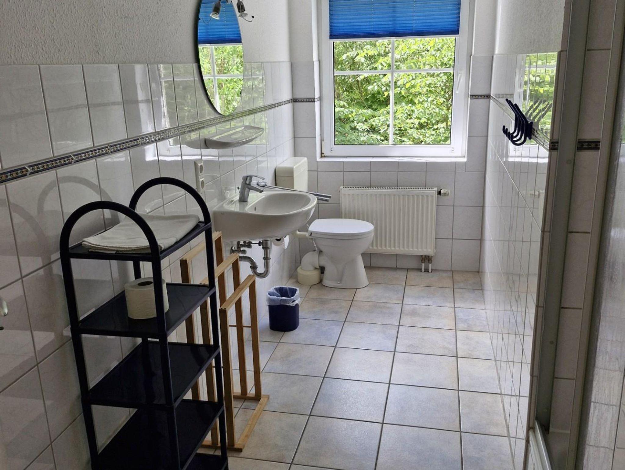 Das Badezimmer ist mit einer Dusche und einem WC ausgestattet und rundet das komfortable Gesamtbild ab.