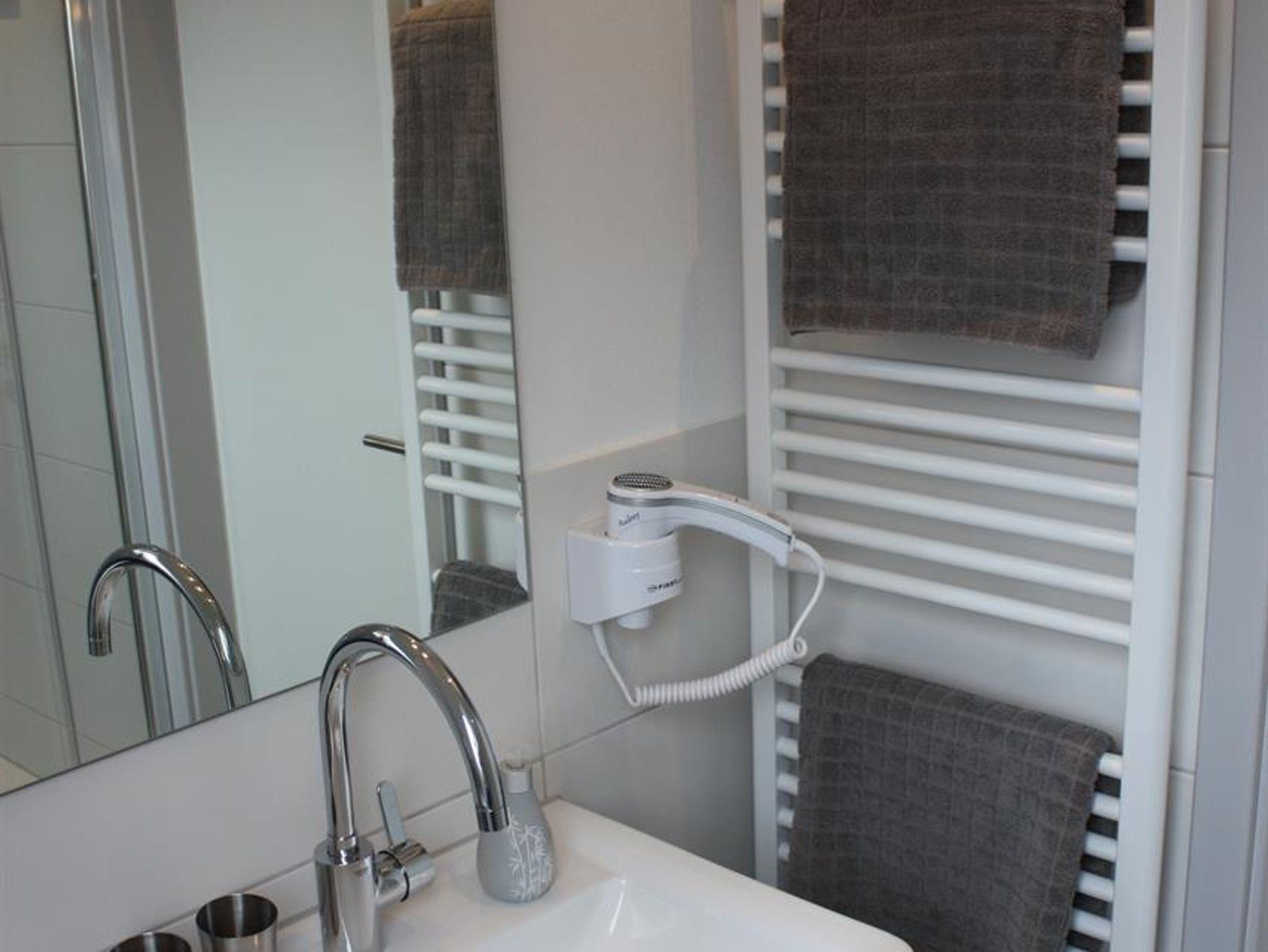 Auch das Badezimmer wurde komplett erneuert, ist hell und modern gestaltet und verfügt neben WC und Dusche auch über eine Waschmaschine und einen Haarfön.