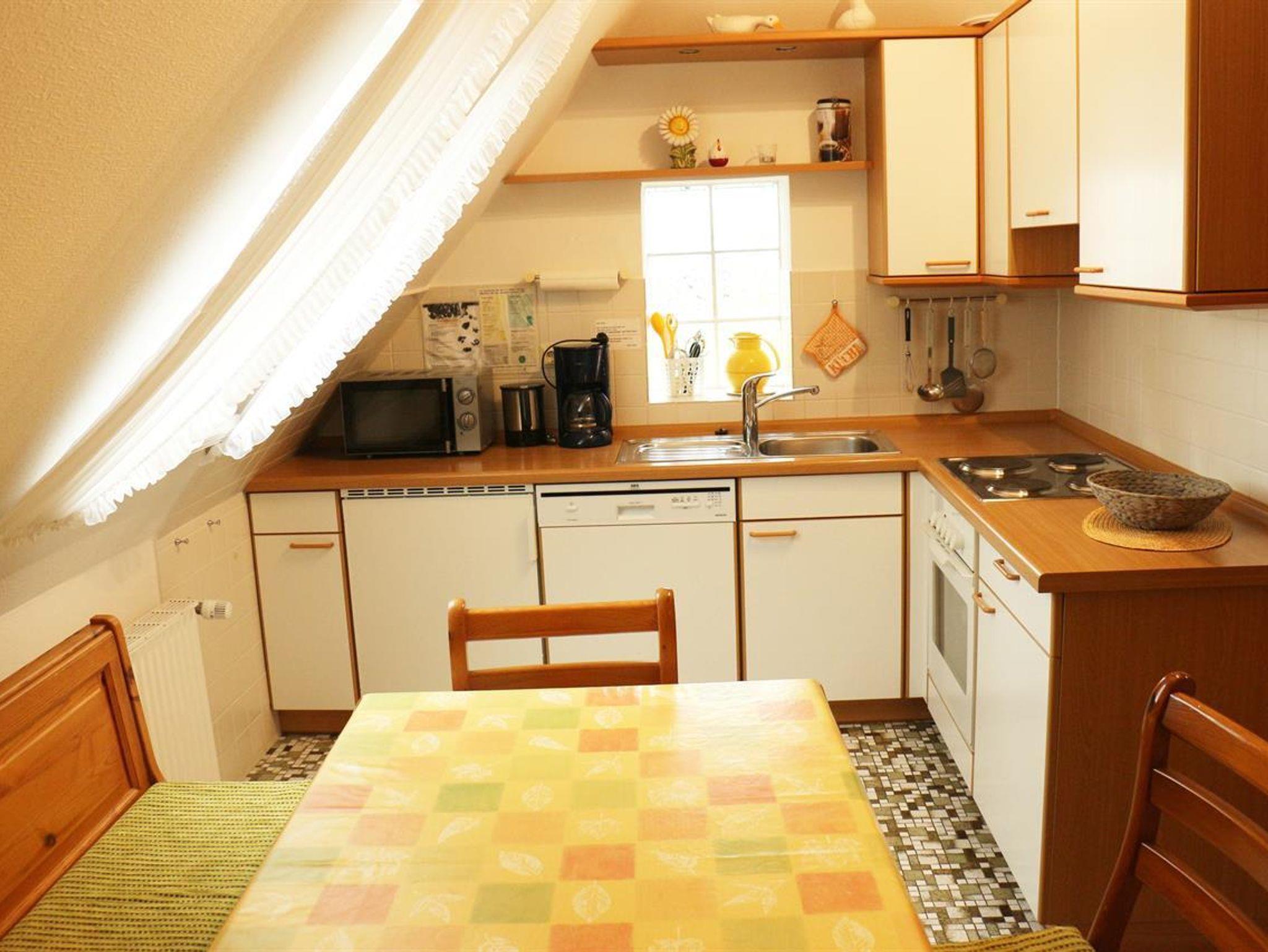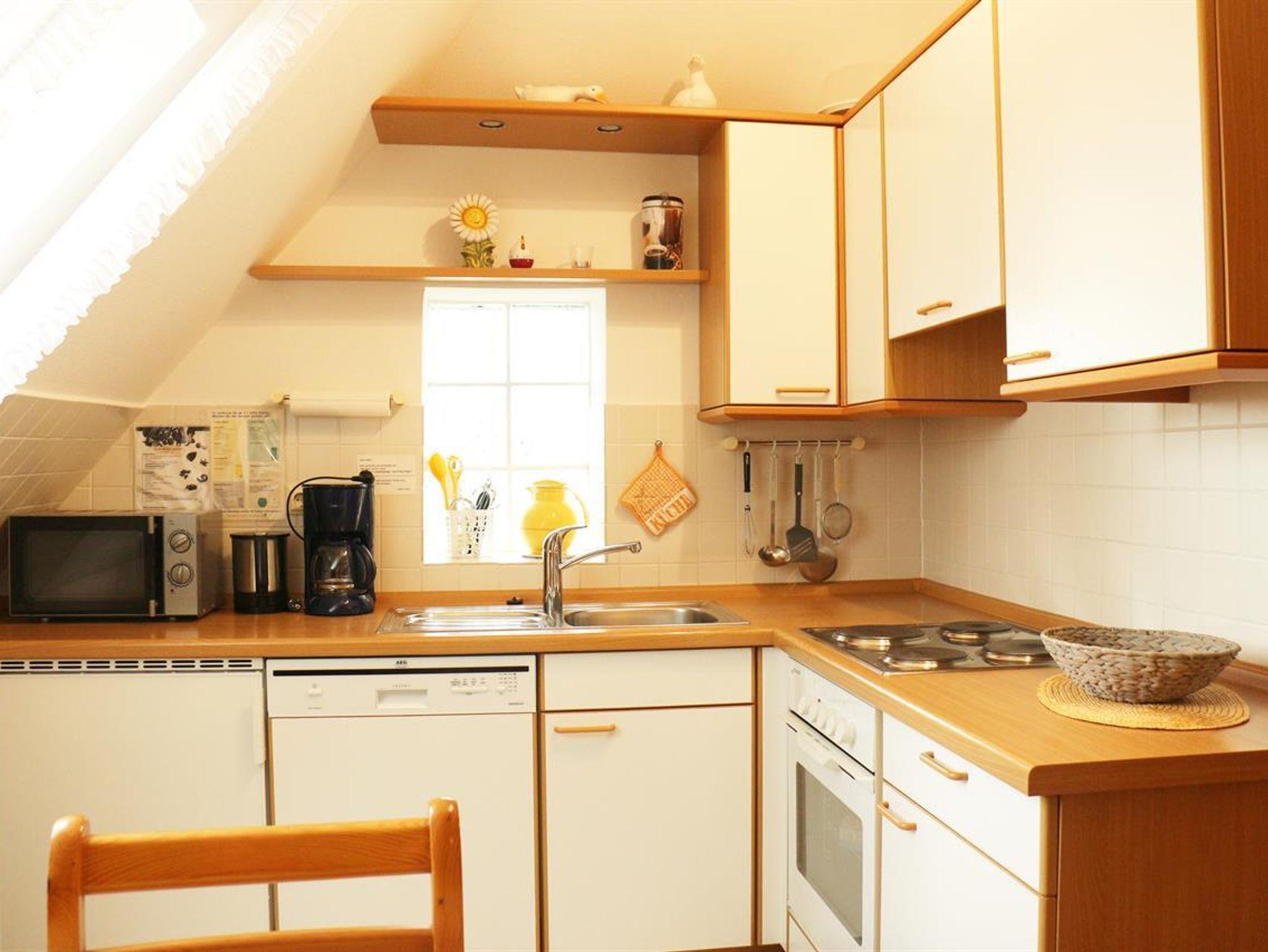 Die Wohnung Kiek Wiet ist ca. 50m² groß und liegt in der 1.Etage. Von hier aus hat man einen schönen Ausblick zum Deich. In der Wohnung finden maximal 4 Personen Platz. Raumaufteilung: Wohn-/Schlafraum mit Schrankbett, separater Schlafraum mit zwei Einzelbetten, Küche mit Essecke und Geschirrspüler, Duschbad/ WC. Die Terrasse für die Wohnungen in der 1. Etage, befindet sich vor dem Haus. Alle Wohnungen sind Nichtraucher-wohnungen. Haustiere sind nicht erlaubt. Waschmaschine und Trockner zur Gemeinschaftsnutzung sind vorhanden. Geschirr-, Hand- und Duschtücher werden gestellt. Bettwäsche ist mitzubringen