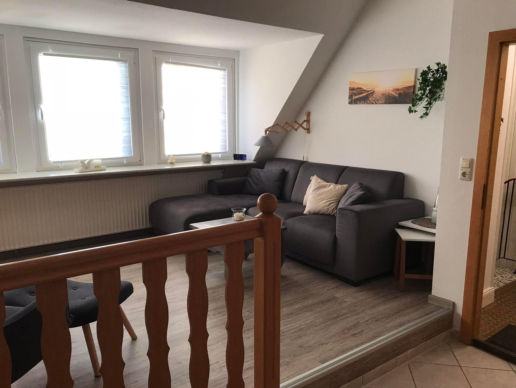 Ferienwohnung Kiek Wiet in Vollerwiek mit Blick zum Deich, familienfreundlich und barrierearm, nahe Strand und großem Garten.