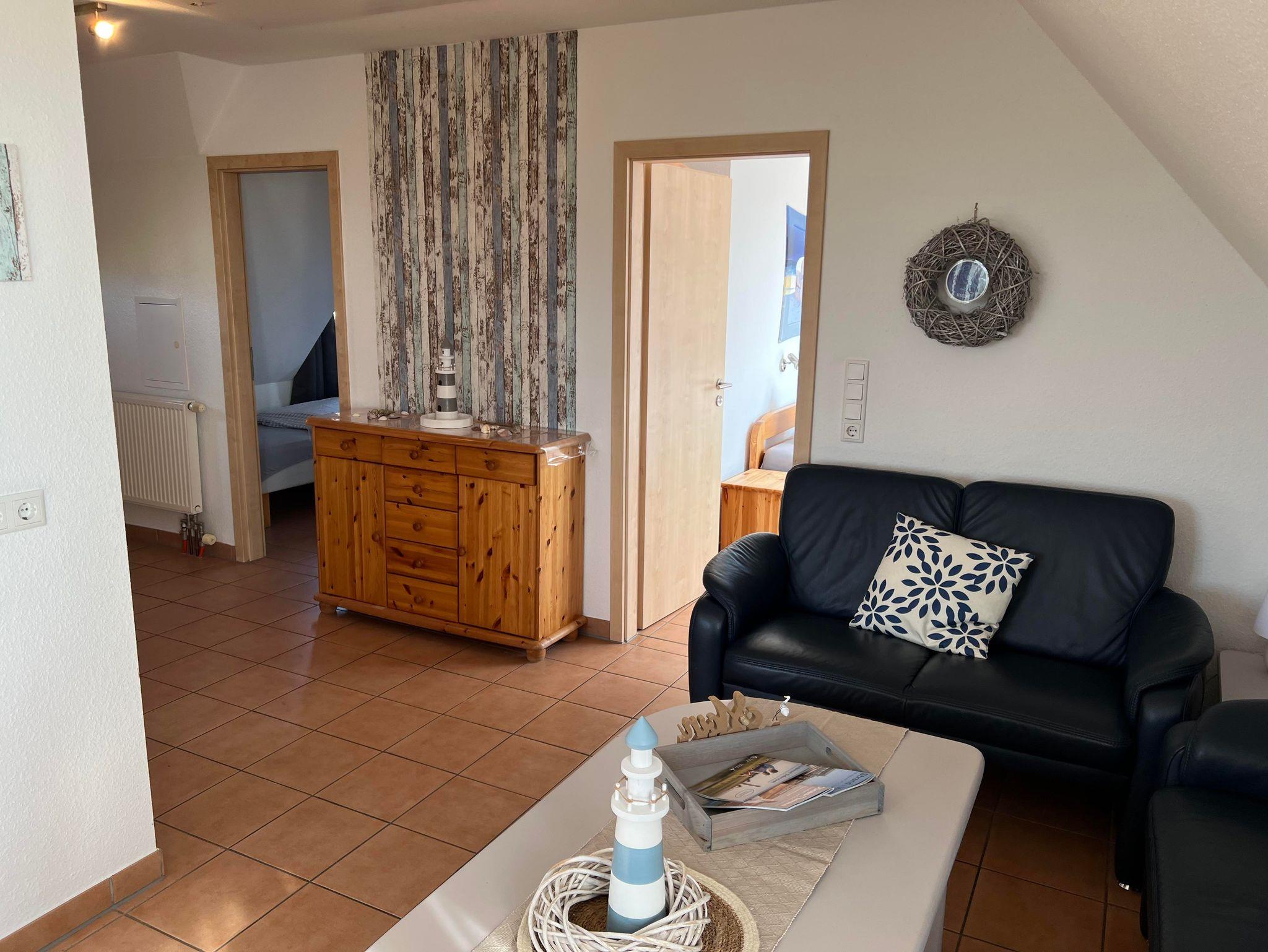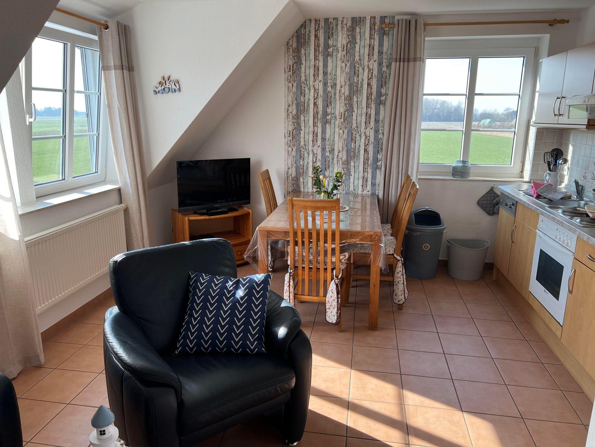 Sie haben durch den hellen und freundlichen Wohnraum die Möglichkeit auf das Marschenland und auf den Deich zu schauen.