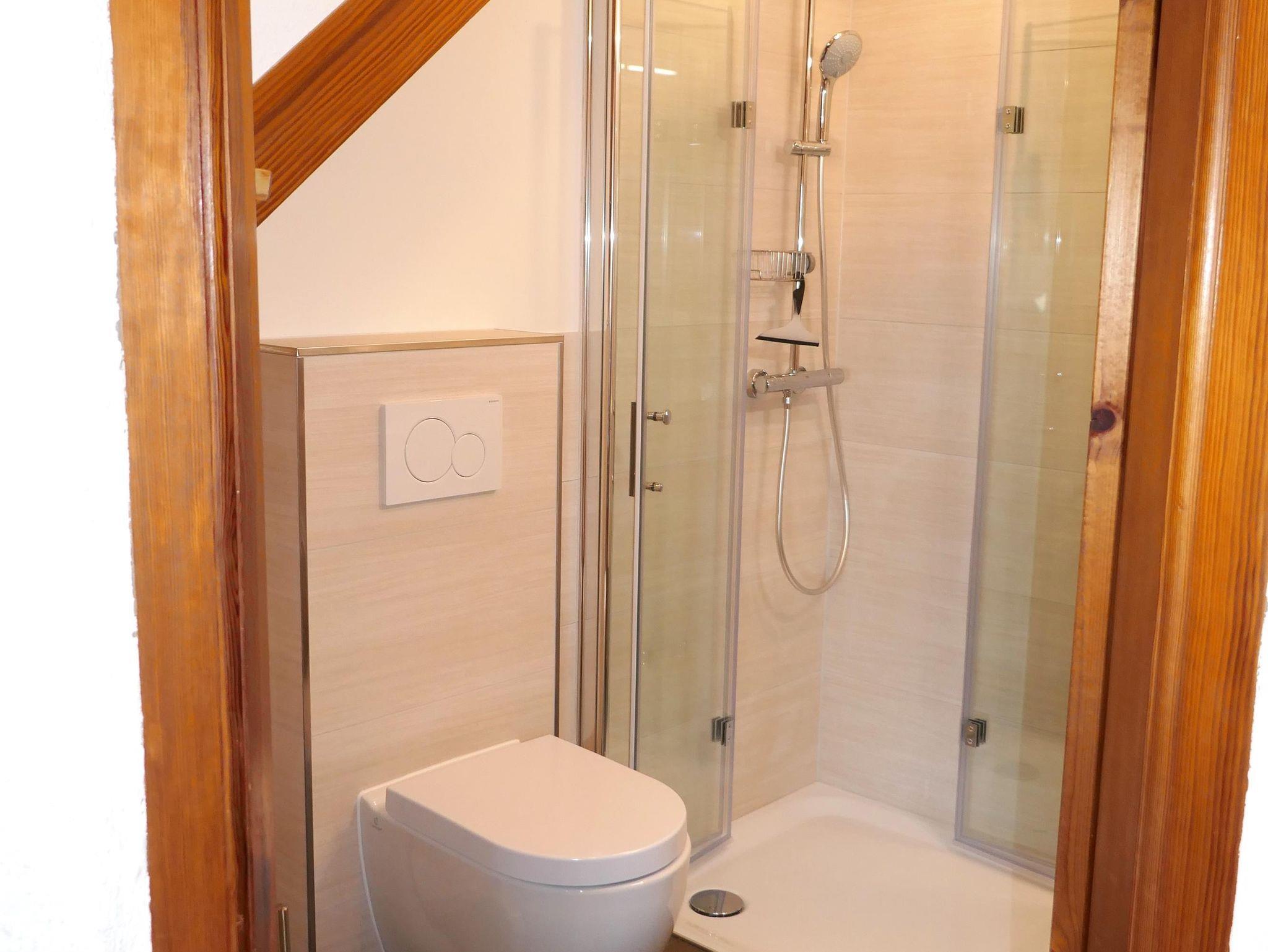 Ein einladender Wohn-Essbereich mit offener Küche lädt zum Verweilen ein in der Ferienwohnung Strandkrabbe in unserem haubarg am meer. Das Bad wurde 2022 komplett erneuert. In das obere Stockwerk gelangt man über die massive Holztreppe zu dem Schlafzimmer mit Doppelbett sowie getrennt davon zur Schlafmöglichkeit für die Kinder in einem Alkoven (Nachbildung einer historischen Doppelalkove mit zwei normal großen Matratzen).
