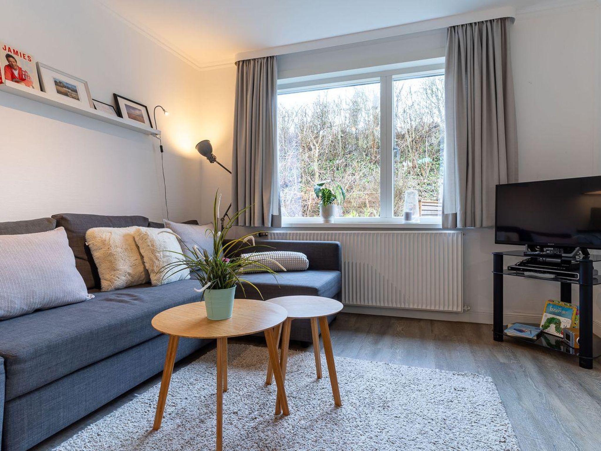Der Wohnraum ist der ideale Ort zum Entspannen und Verweilen. Hier finden Sie einen Esstisch, eine bequeme Couch, eine TV-Anrichte und eine gut ausgestattete Küchenzeile. Die Küche ist mit einer Spülmaschine, einem Backofen, einer Kaffeemaschine, einem Toaster und reichlich Geschirr ausgestattet, um Ihre Mahlzeiten bequem zuzubereiten.