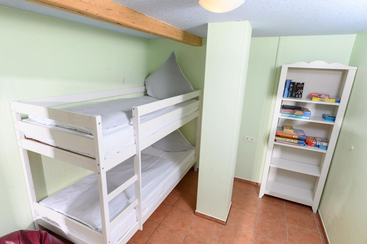 Ein liebevoll gestaltetes Kinderzimmer im Erdgeschoss mit Etagenbett und Spielschrank bietet kleinen Abenteurern ihren eigenen Rückzugsort.