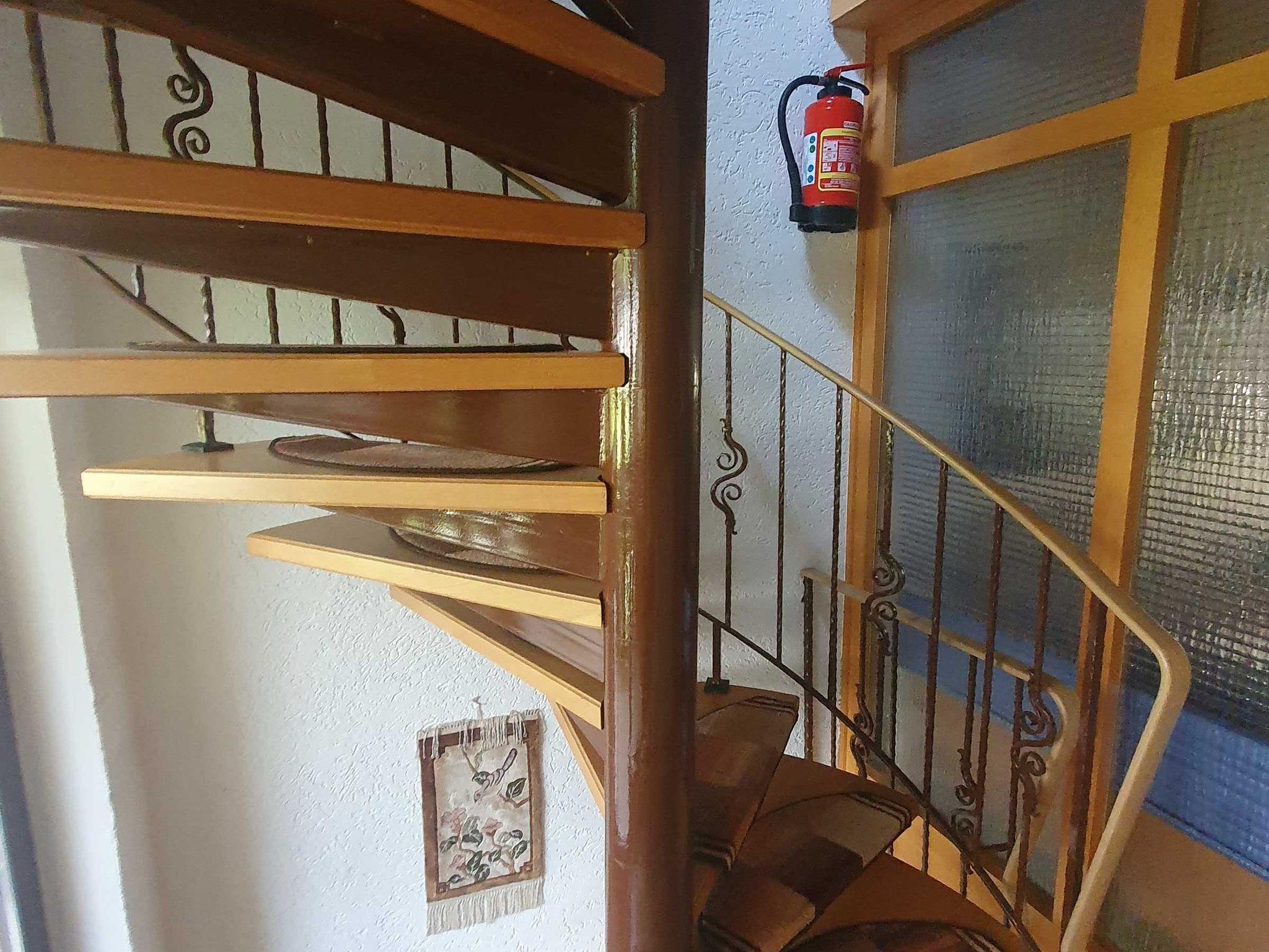 Der Balkon im 2.Stock ist mit einem Sichtschutz abgeteilt.