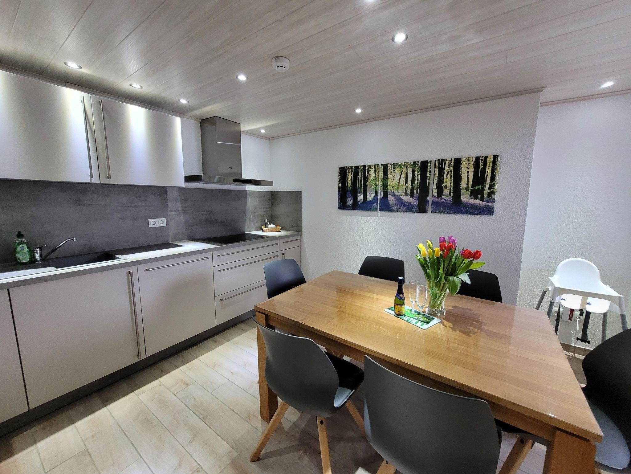 Eine moderne, hochwertige, voll ausgestattete Einbauküche mit Geschirrspülmaschine, hochgesetztem Backofen, Mikrowelle mit Grillfunktion und Induktionskochfeld rundet Ihren Urlaub wunderbar ab.