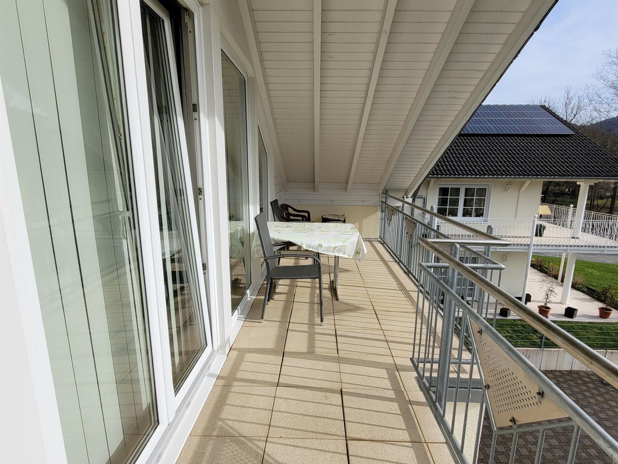 Der Zugang zu einem großen und gemütlichen Sonnenbalkon, der sowohl vom Wohnzimmer als auch vom Schlafzimmer erreichbar ist, macht Ihre Unterkunft besonders attraktiv. Hier können Sie die warmen Sonnenstrahlen genießen, bei einer Tasse Kaffee entspannen oder den Abend mit einem Glas Wein ausklingen lassen. Der Balkon bietet Ihnen einen schönen Ausblick auf die umliegende Natur und lädt dazu ein, die Seele baumeln zu lassen.