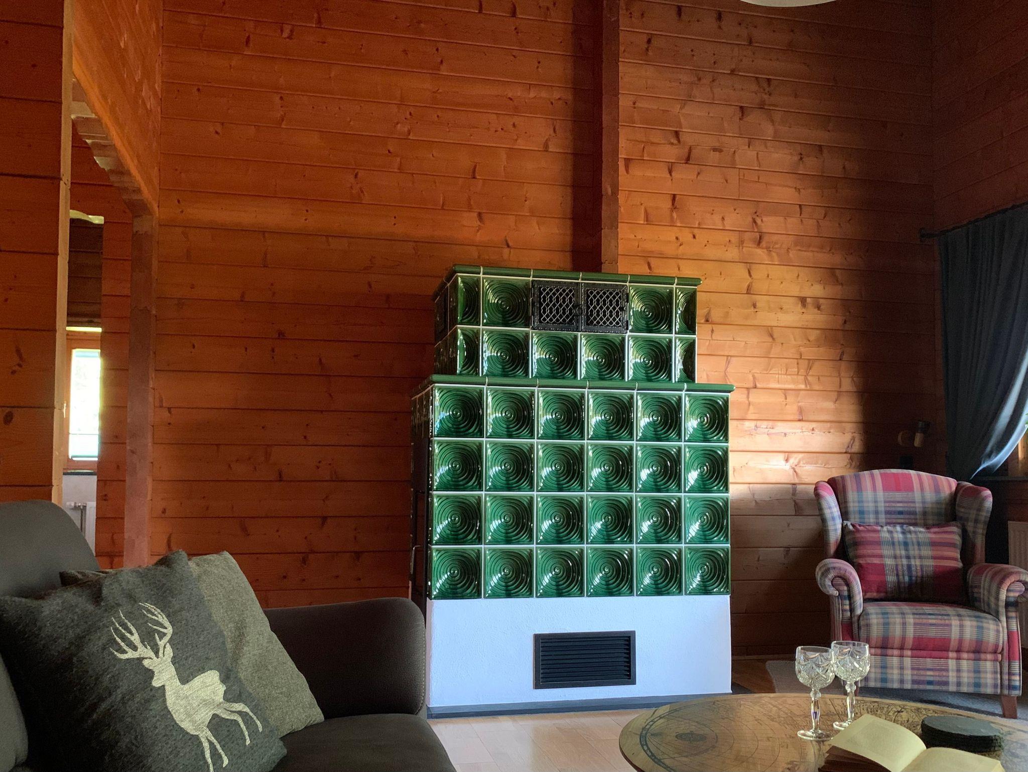 Genießen Sie im Wohnzimmer, mit großem Balkon zum Frühstücken unterm Kastanienbaum, einem Kachelofen für die gemütliche Winterzeit und einer modernen Loungeecke, Ihren Urlaub.