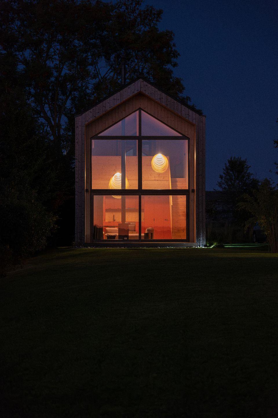 Erleben Sie nachhaltigen Komfort und herrliche Naturblicke im Holi Huus, einem klimafreundlichen Tiny House mit Kamin und E-Ladestation.