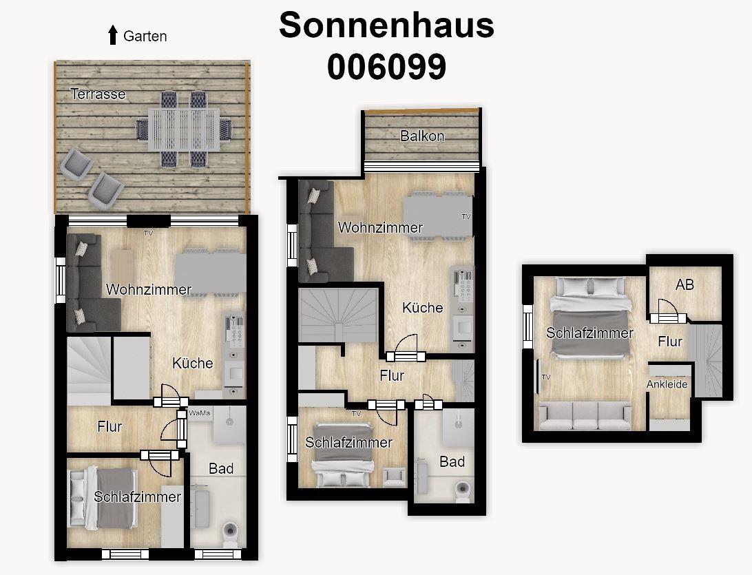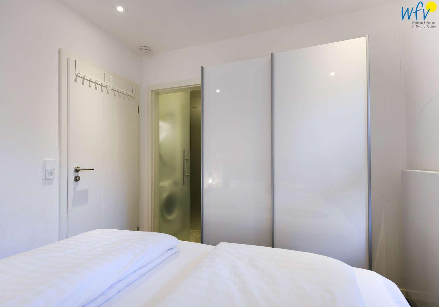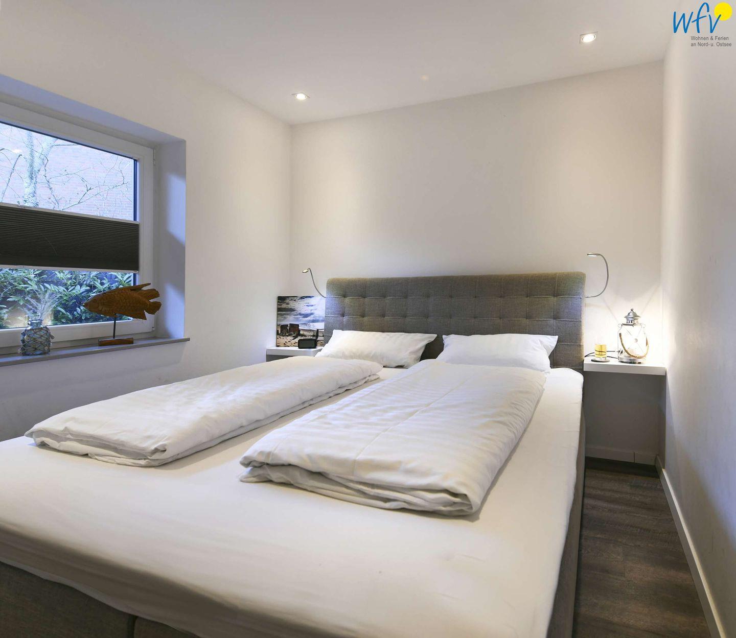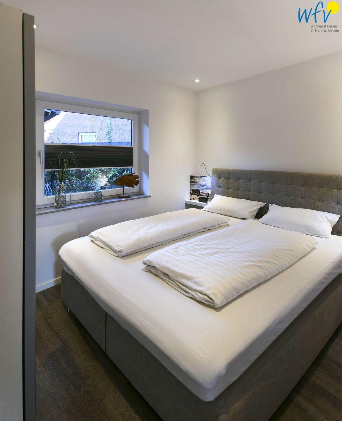 Drei separate Schlafzimmer bieten Ihnen Übernachtungsmöglichkeiten für bis zu sechs Personen. Die Zimmer sind jeweils mit einem komfortablen Doppelbett und einem Kleiderschrank ausgestattet. In zwei Schlafzimmern befindet sich ein TV.