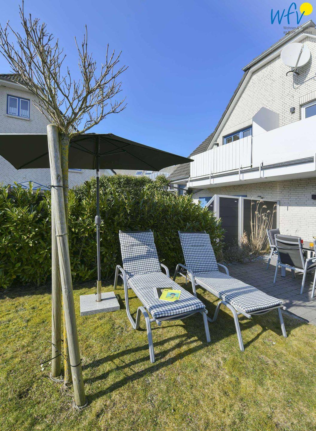 Sonne und frische Nordseeluft buchen Sie im "Sonnenhaus" inklusive! Morgens können Sie mit der Ostsonne aufstehen, tagsüber die Südsonne auf dem Balkon oder auf der Terrasse genießen und abends die letzten Sonnenstrahlen beim Grillen auf der 20 m² großen Terrasse auskosten. Das sind unvergessliche Urlaubsmomente auf Wangerooge! Für ein ausgiebiges Sonnenbad stehen Liegestühle im Garten bereit.