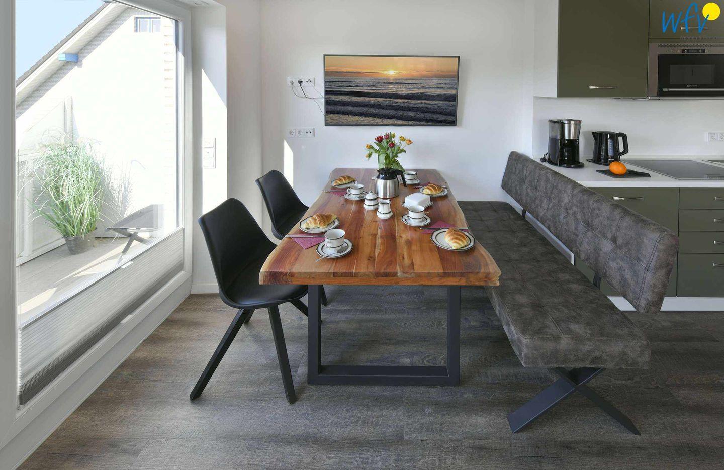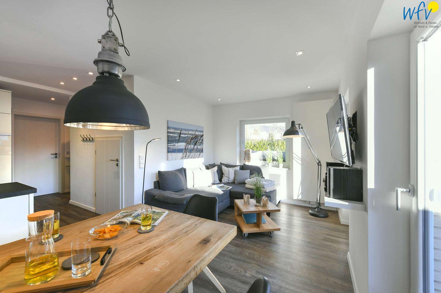 Genießen Sie Wohlfühlferien auf Wangerooge! Eine großzügige Raumgestaltung über zwei Etagen, modernes Mobiliar und ausgewählte Accessoires verleihen dem Ferienhaus "Sonnenhaus" eine wunderschöne Atmosphäre zum Entspannen.