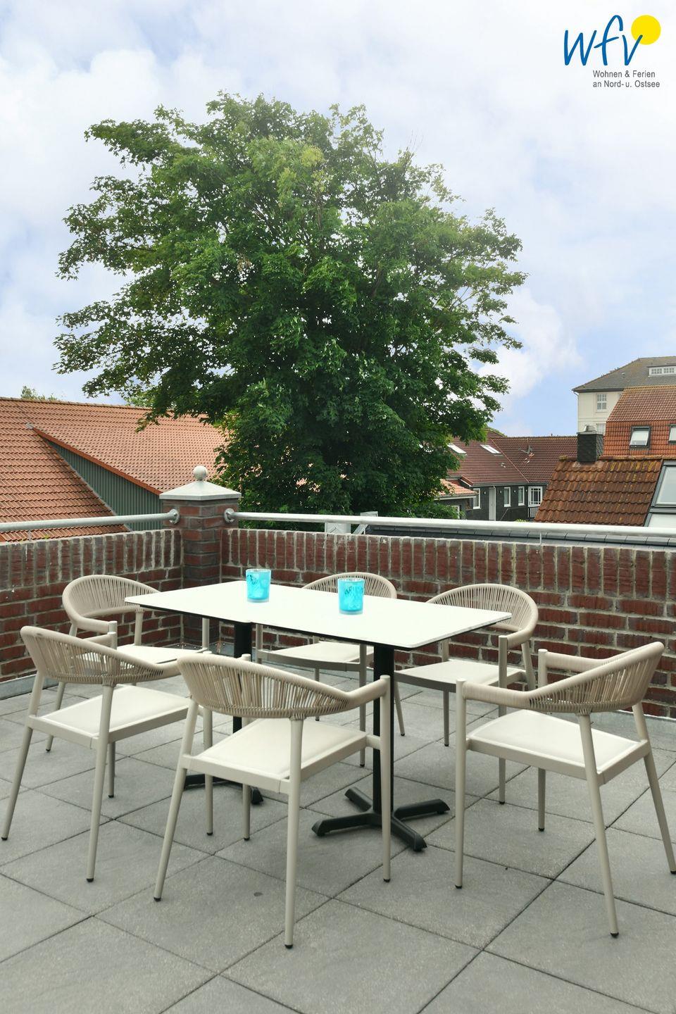 Wohltuende Nordseeluft genießen Sie auf der großen sonnigen Dachterrasse. Hier können Sie wunderbar zusammensitzen, ausspannen und die Seele baumeln lassen - ein herrliches Urlaubsgefühl!