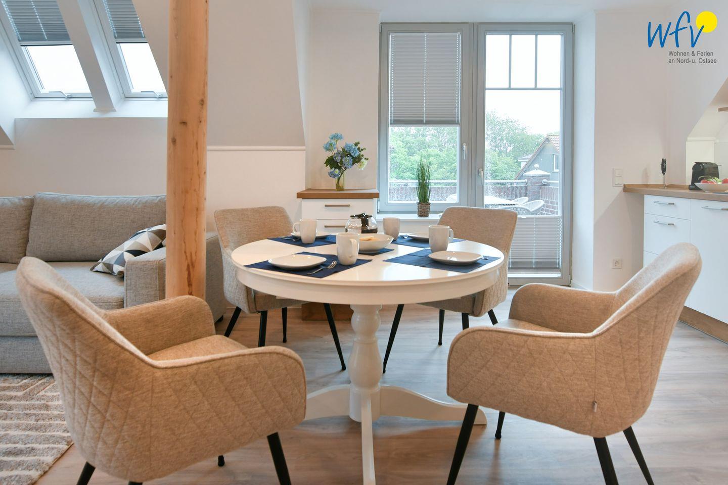 Erleben Sie Luxus und Komfort in der exklusiven Dachgeschosswohnung Haus Christa auf Wangerooge mit großer Dachterrasse.