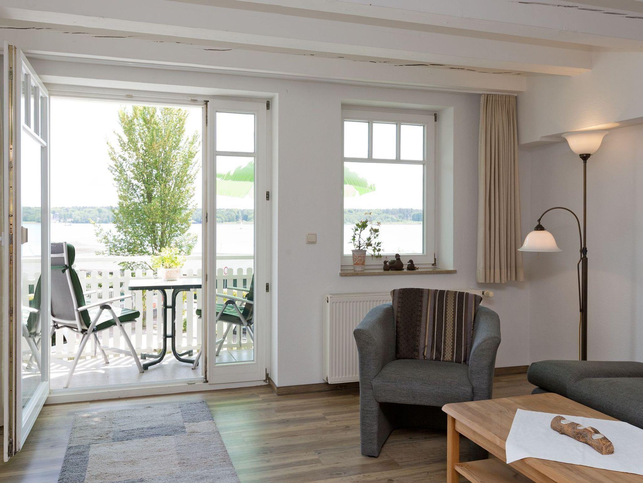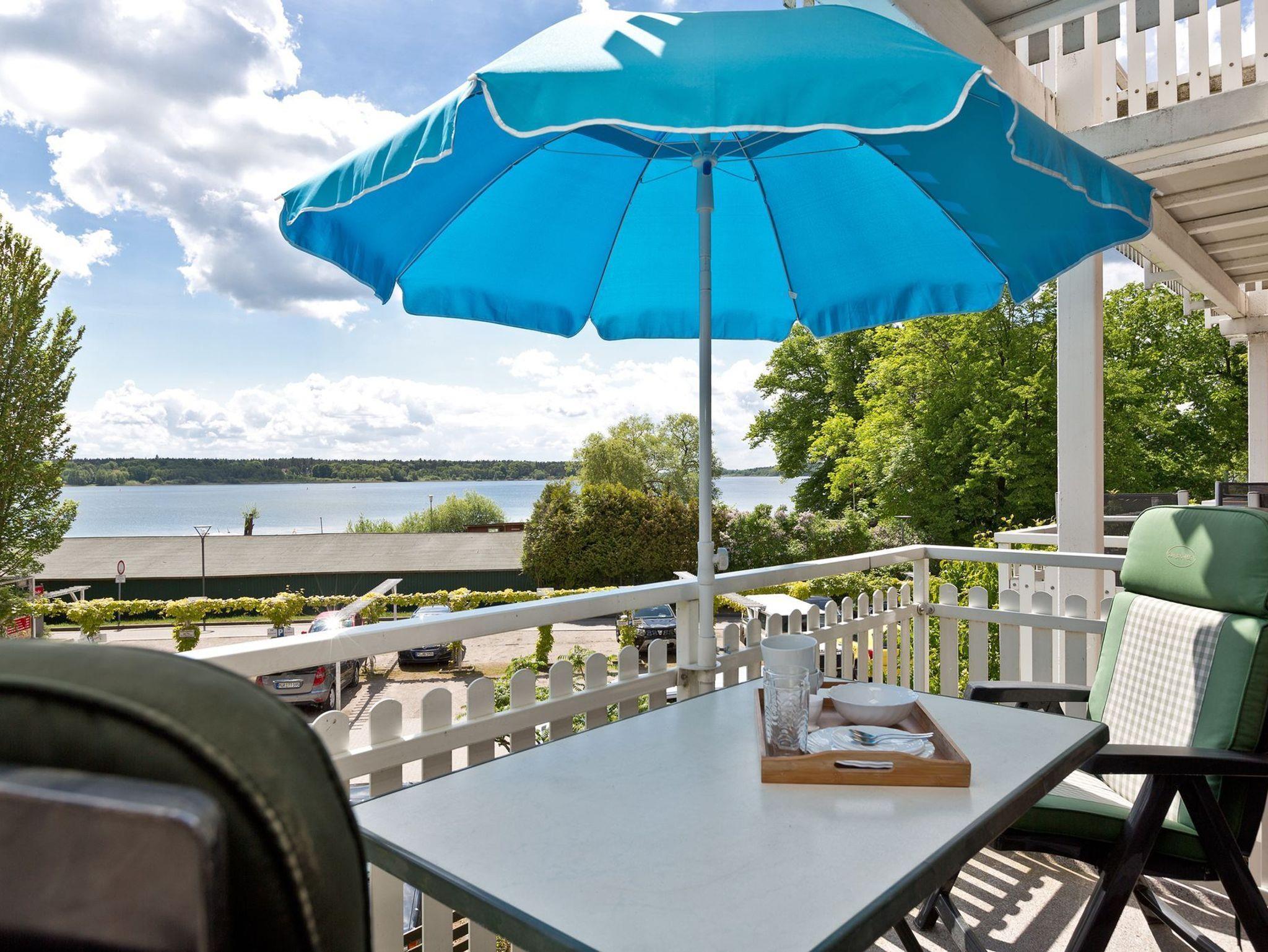 Selbst noch in der Abendsonne können Sie bei einem Gläschen Wein, vom Balkon aus, den Blick auf die Müritz genießen.