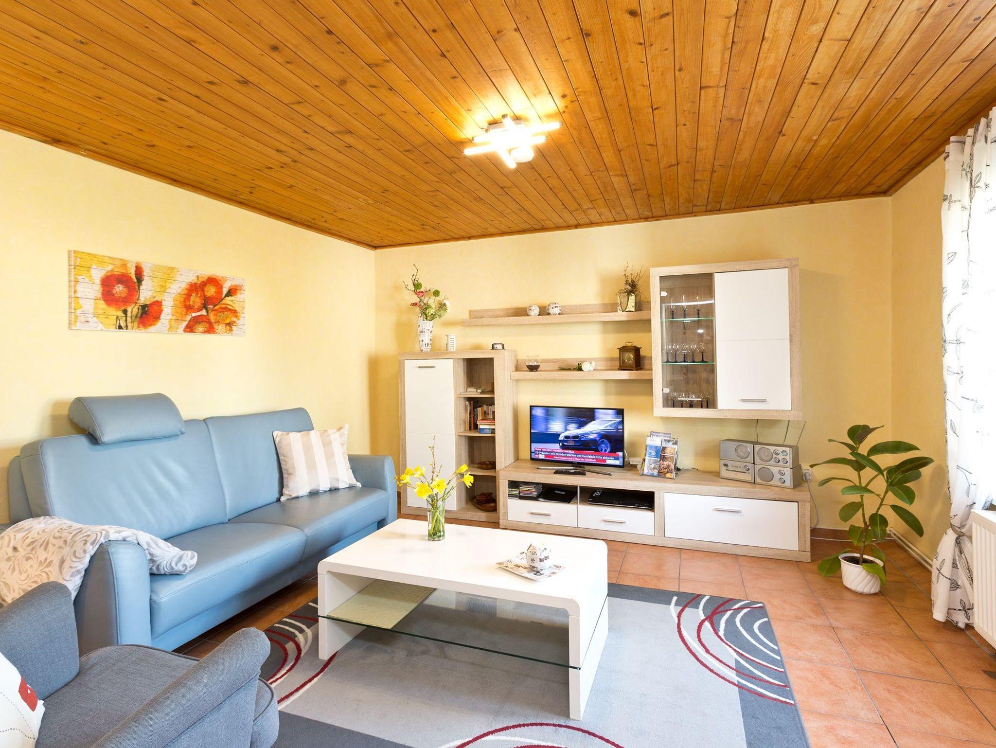 Im Wohnzimmer können Sie auf der bequemen Couchlandschaft relaxen und den Flachbild-TV genießen.