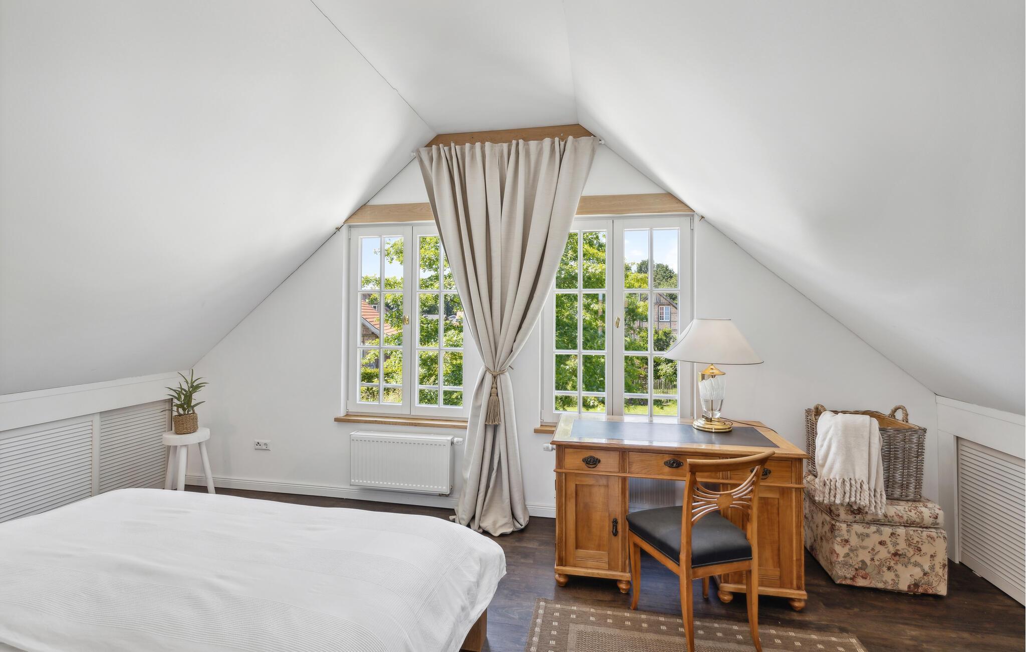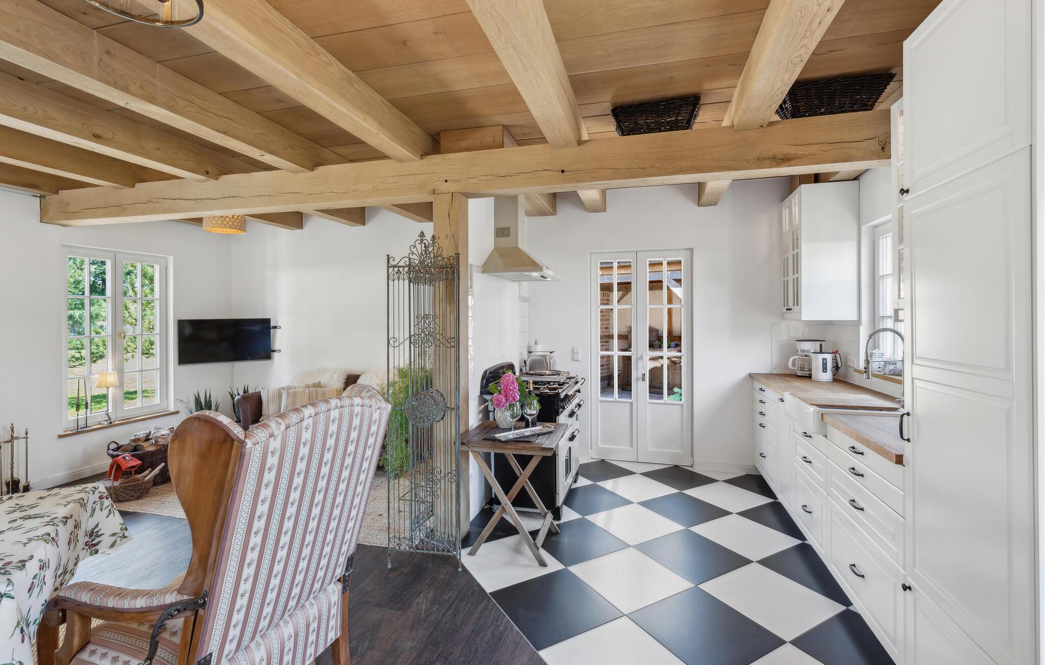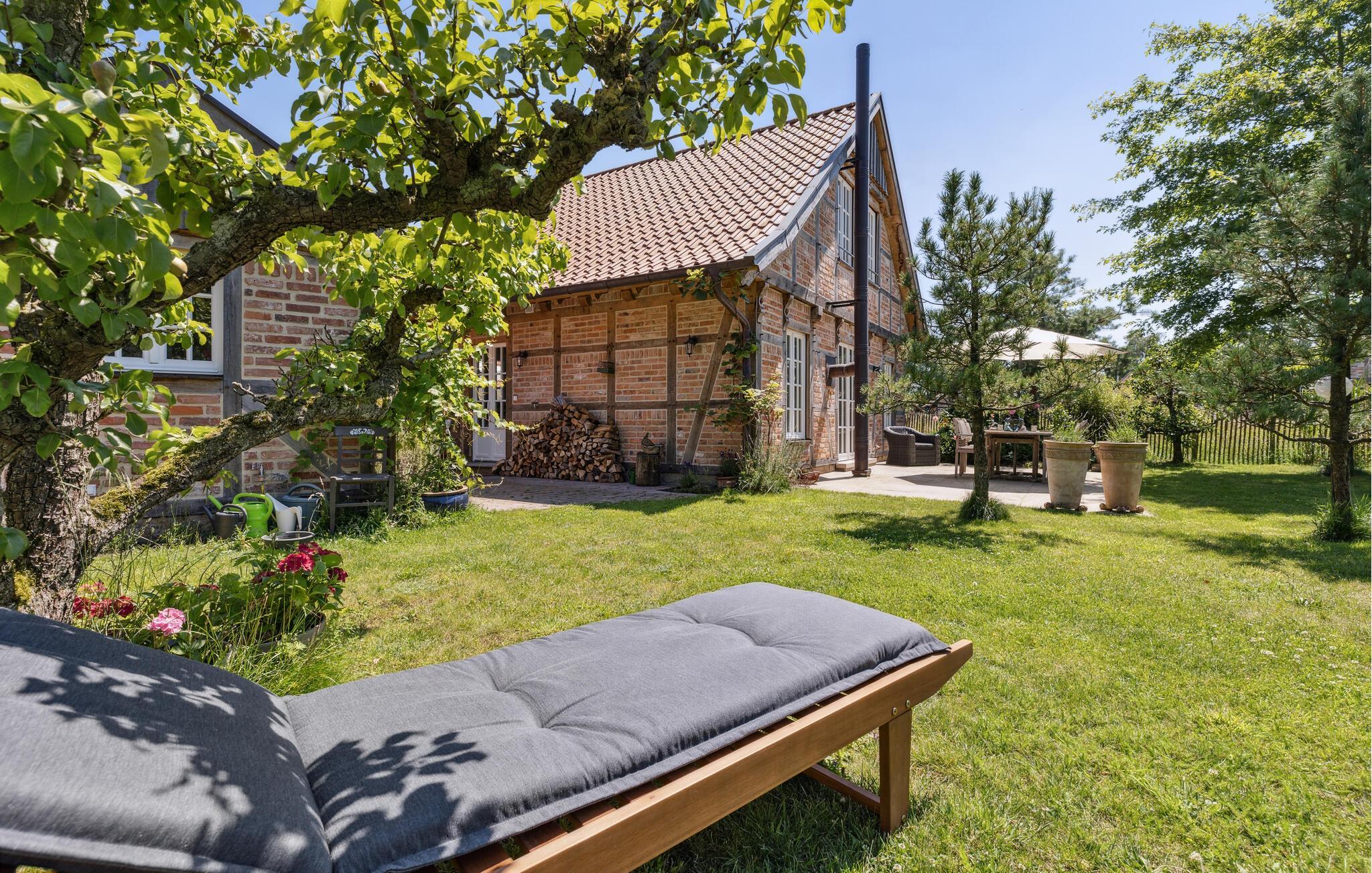 Gönnen Sie sich eine Auszeit vom Alltag in diesem schönen, stilvollen und geräumigen Ferienhaus. Das sichtbare Fachwerk, der authentische Holzofen und die hellen Räume mit der wohnlichen Einrichtung schaffen eine Wohlfühlatmosphäre, die ihresgleichen sucht. Nehmen Sie die Mahlzeiten gemeinsam mit schönem Blick in den Garten durch aparte Sprossenfenster ein und sorgen Sie mit einem Feuer im Kaminofen für eine gemütliche Stimmung an kühlen Abenden.