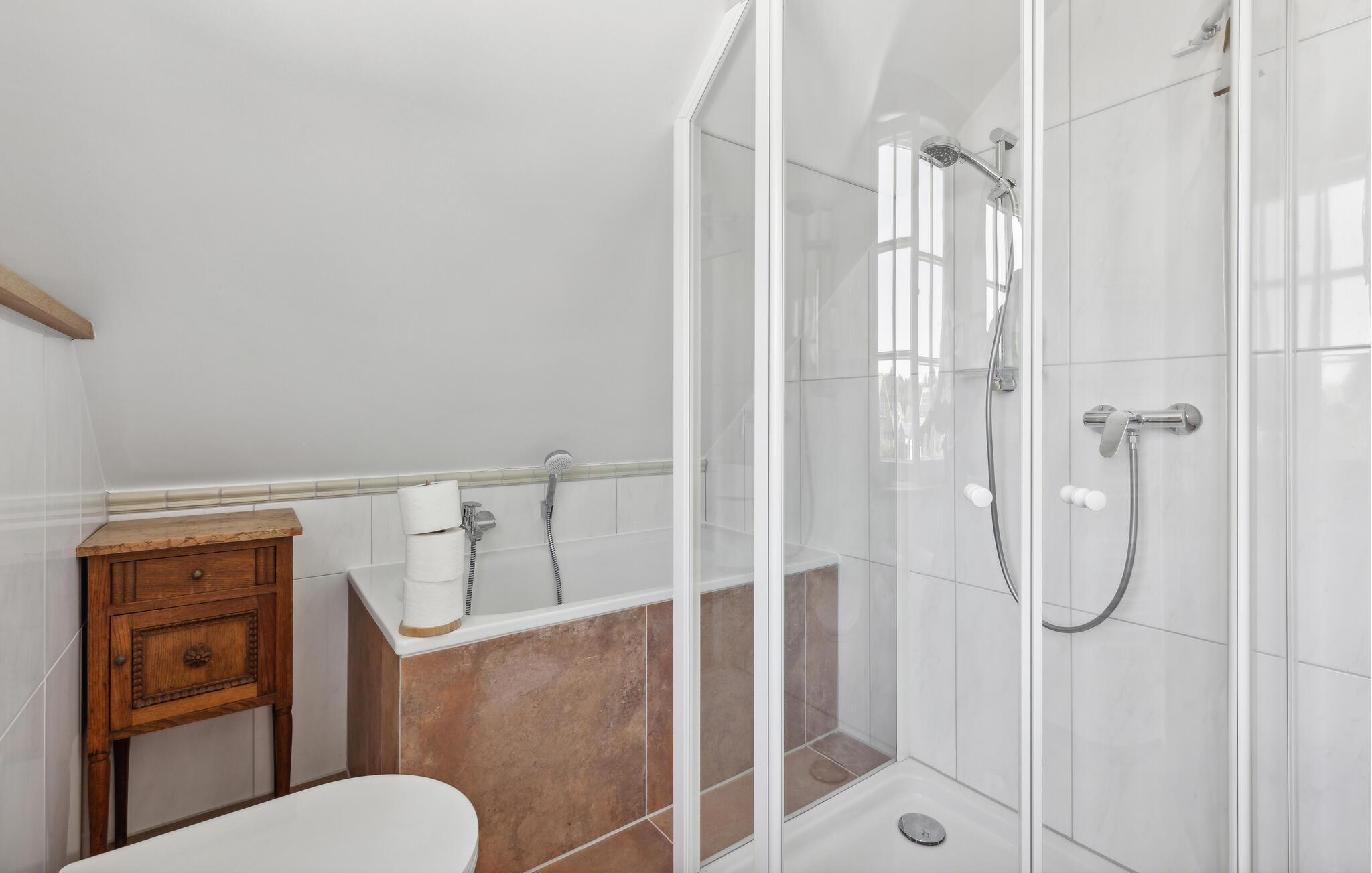 Badezimmer (nr. 1) - WC. Warmes und kaltes Wasser. Dusche und Badewanne