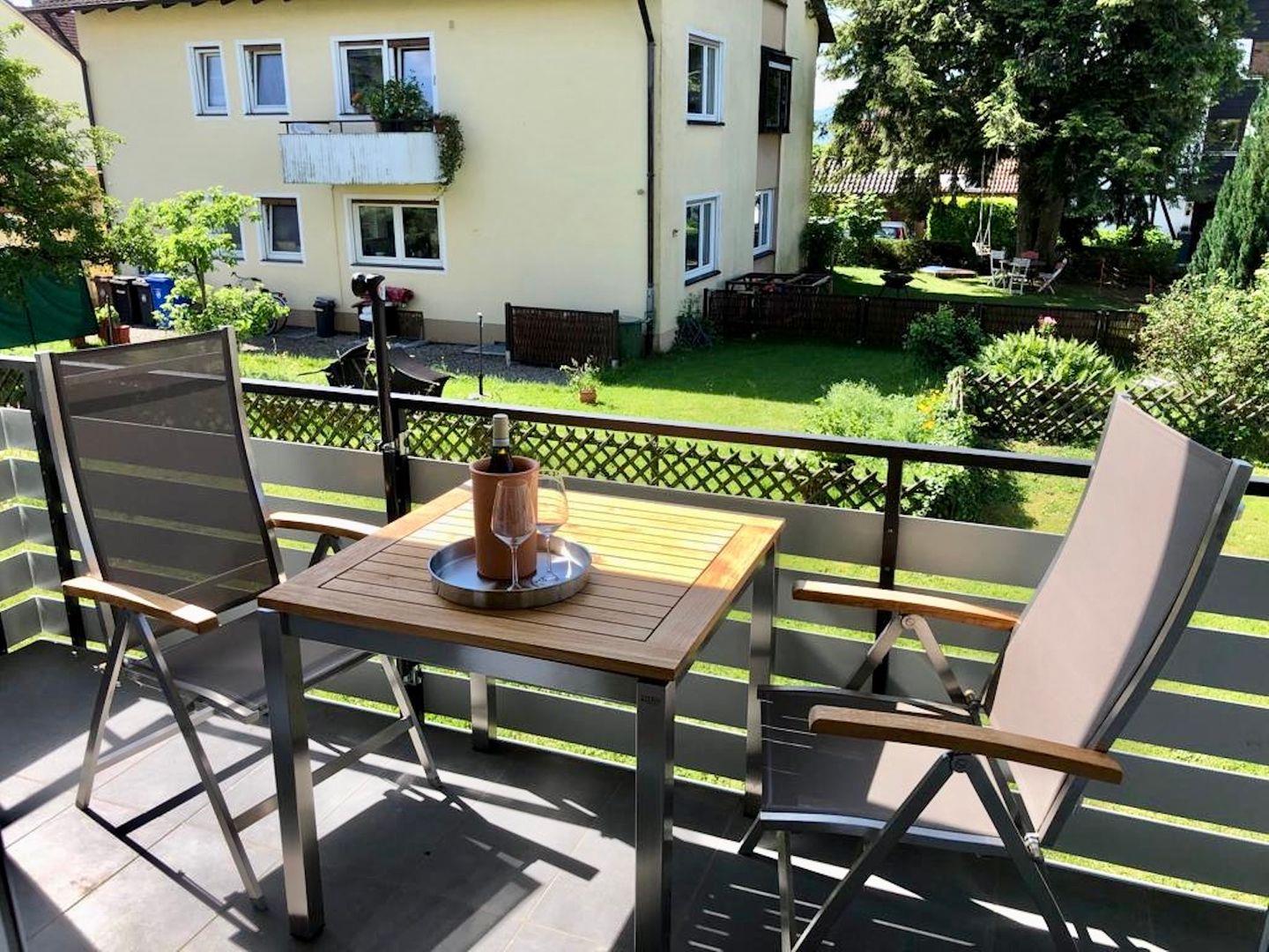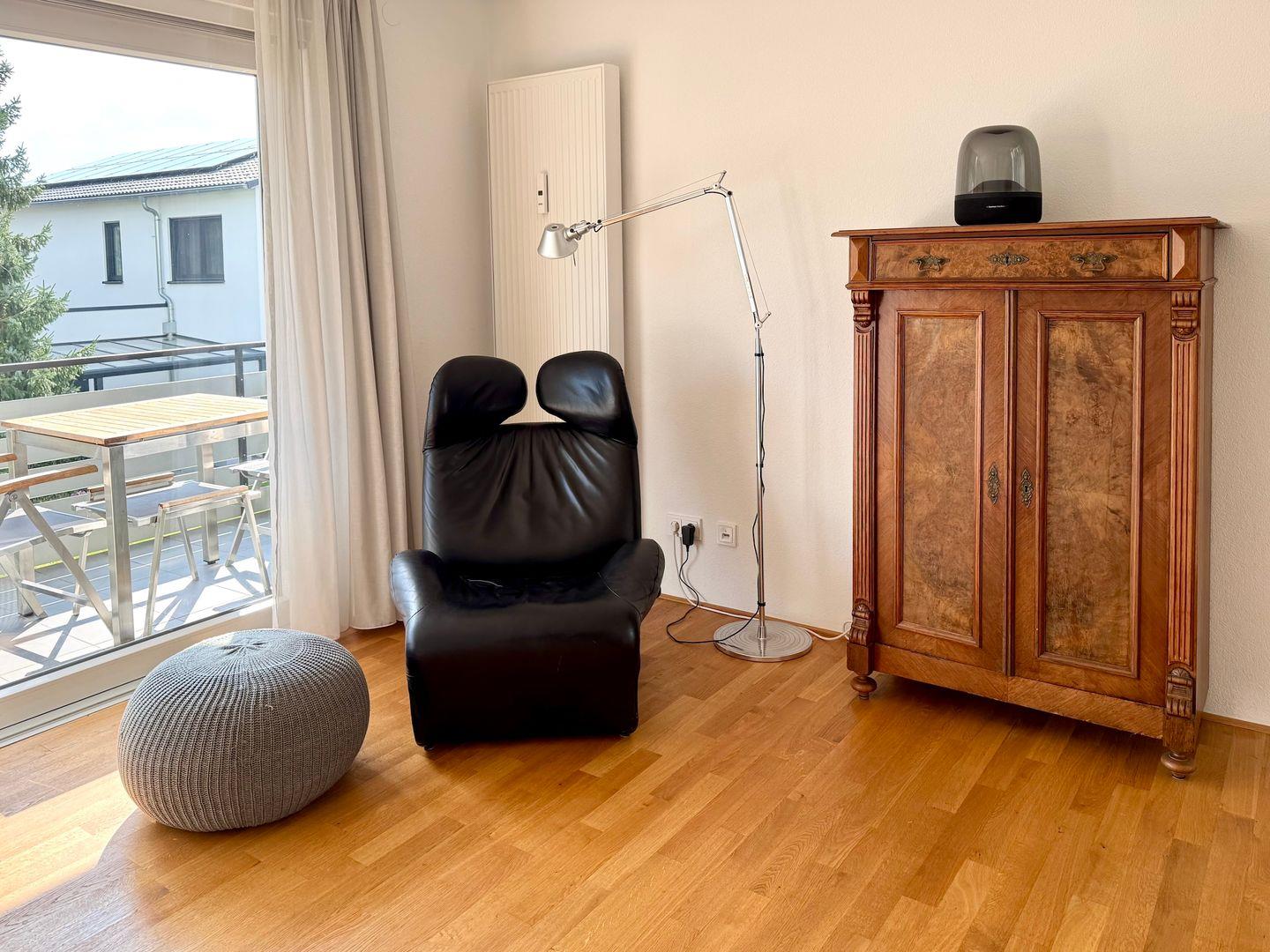 Auf dem mit hochwertiger Sitzgarnitur ausgestatteten Südbalkon mit Blick in den Garten können Sie die Sonne sowohl beim Frühstück als auch beim abendlichen Aperitif genießen.