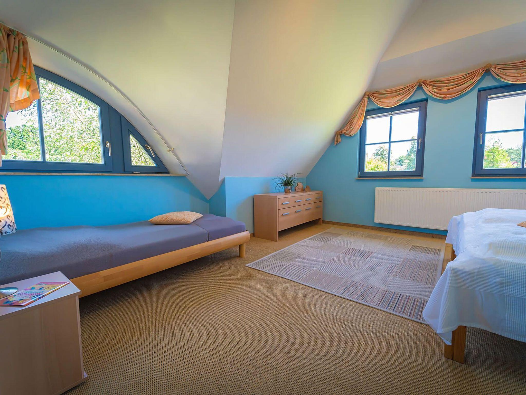 Das freistehende Reethaus mit eigenem Garten bietet Familien mit bis zu 6 Personen auf ca. 100 m² und zwei Ebenen viel Platz für den Urlaub. Die beiden Schlafzimmer mit je einem Doppelbett und einem Einzelbett befinden sich im Obergeschoss. Die Nebekosten für Strom, Wasser und Gas sind für dieses Ferienhaus inklusive.