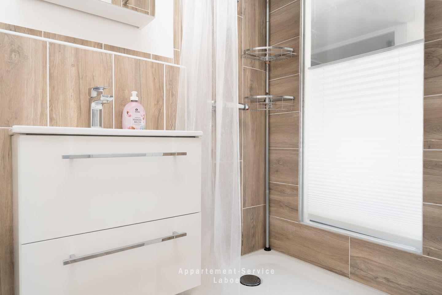 Die kleine, gut ausgestattete Küche mit Essplatz lädt dazu ein, nach Herzenslust zu kochen und zu genießen. Der Flur mit Garderobe sorgt dafür, dass alles seinen Platz hat und das moderne Bad mit Dusche und WC macht deinen Aufenthalt rundum komfortabel.
