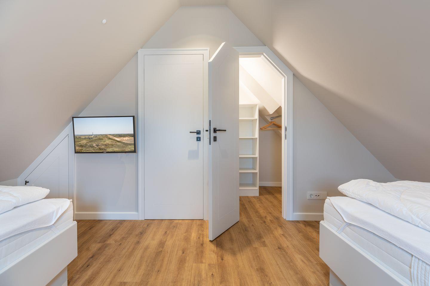 Im Obergeschoss laden zwei Schlafzimmer mit himmlisch gemütlichen Boxspringbetten und platzsparenden