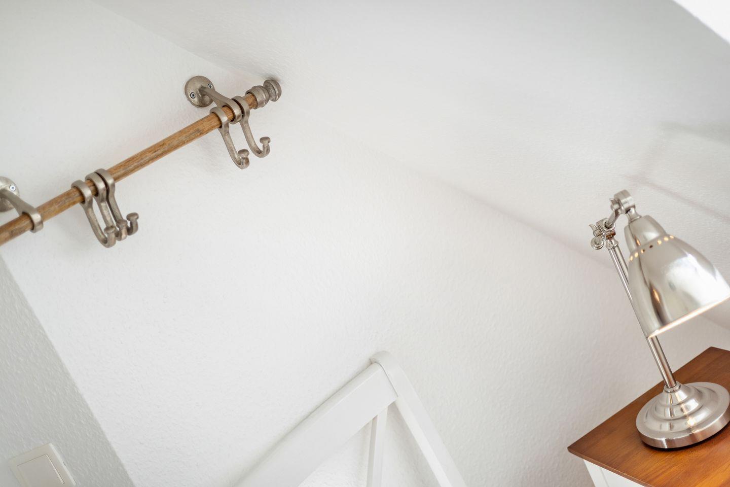 Obergeschoss: geschmackvoll und farblich gekonnt aufeinander abgestimmte Möblierungen, Farben und Stoffe. Kabel-TV, Hifi-Anlage. Luxuriöse integrierte Küche mit Geschirrspüler und einem Mikrowellen-Backofen-Kombigerät. 1 Schlafraum mit 2 getrennten Betten (90x200cm) und sehr schönen Einbauten. Wohlfühl-Bad mit Dusche und WC. Sonniger West-Balkon mit Teak-Gartenmöbeln und eigenem Strandkorb.