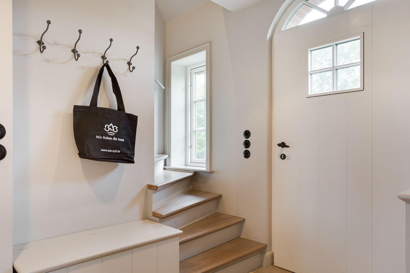 Im ersten Obergeschoss finden Sie ein Schlafzimmer mit zwei gemütlichen Einzelbetten und ein weiteres Badezimmer mit großer Dusche und Bidet. Außerdem liegt auf dieser Ebene der Master-Bedroom mit zusätzlichem Bad en Suite und freistehender Vintage-Badewanne im Schlafzimmer. Liebevolle Details wie freie Deckenbalken machen auch diese Ebene des Hauses zu einem gemütlichen Sylter-Urlaubstraum. Im Dachgeschoss finden Sie ein weiteres Schlafzimmer mit einem großen Doppelbett.