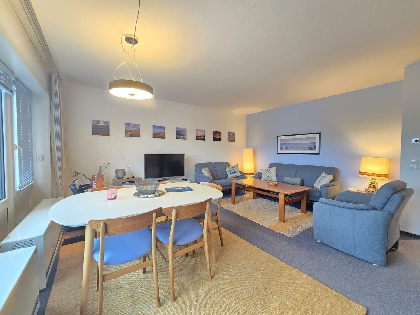Der Wohnbereich ist großzügig und lichtdurchflutet gestaltet, mit einer gemütlichen Couch, hochwertigen Möbeln und einem Flachbild-TV. Große Fensterfronten ermöglichen einen traumhaften Blick auf die Dünen und den gepflegten Garten mit Rosen, sodass Sie die Nordseeluft auch von innen genießen können. Die moderne Küche ist vollständig ausgestattet und umfasst einen Herd, Geschirrspüler und eine Kaffeemaschine, sodass Sie Ihre Lieblingsgerichte bequem zubereiten können. Das Ess- und Wohnkonzept schafft eine offene Atmosphäre für gemeinsame Stunden und entspannte Abende.