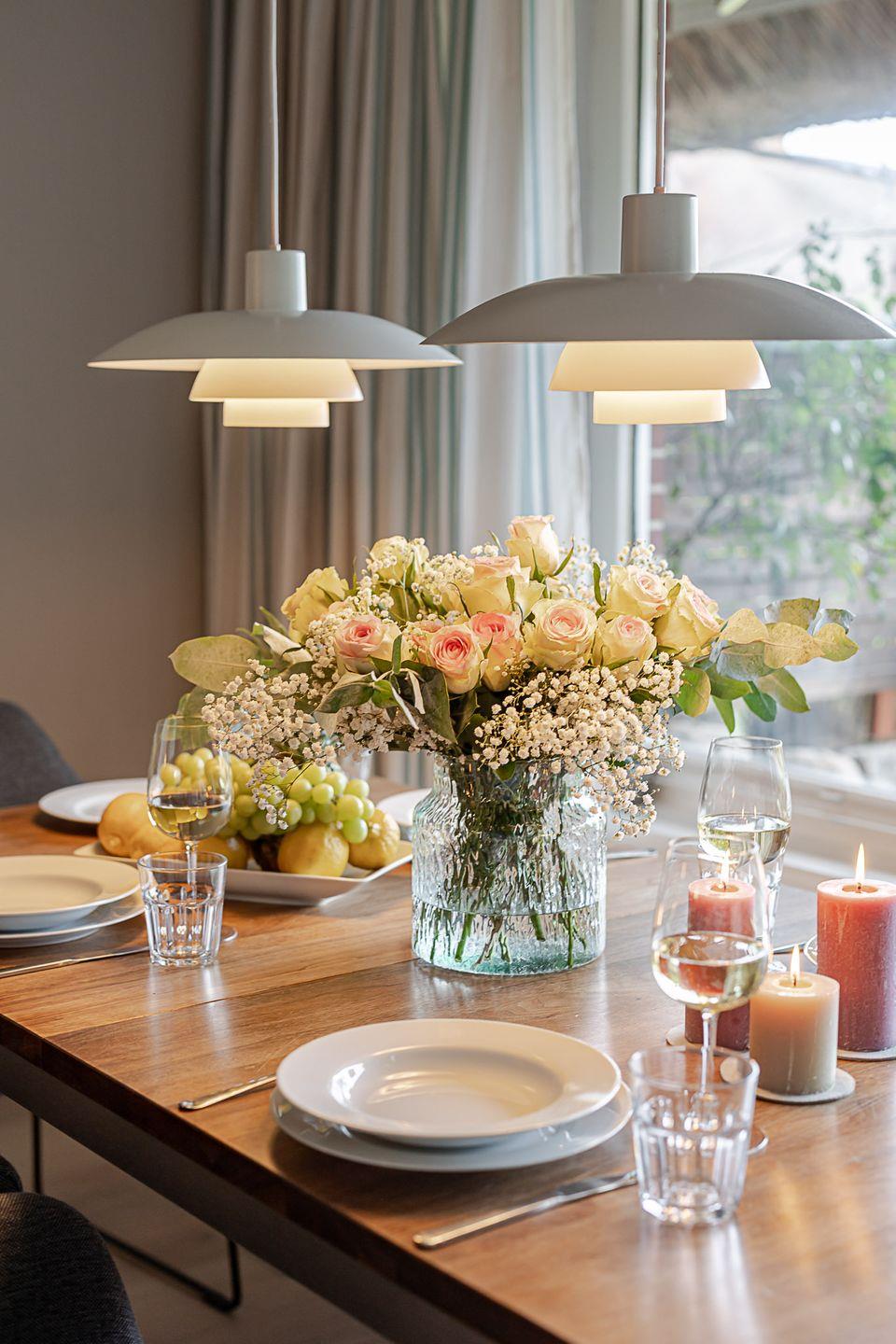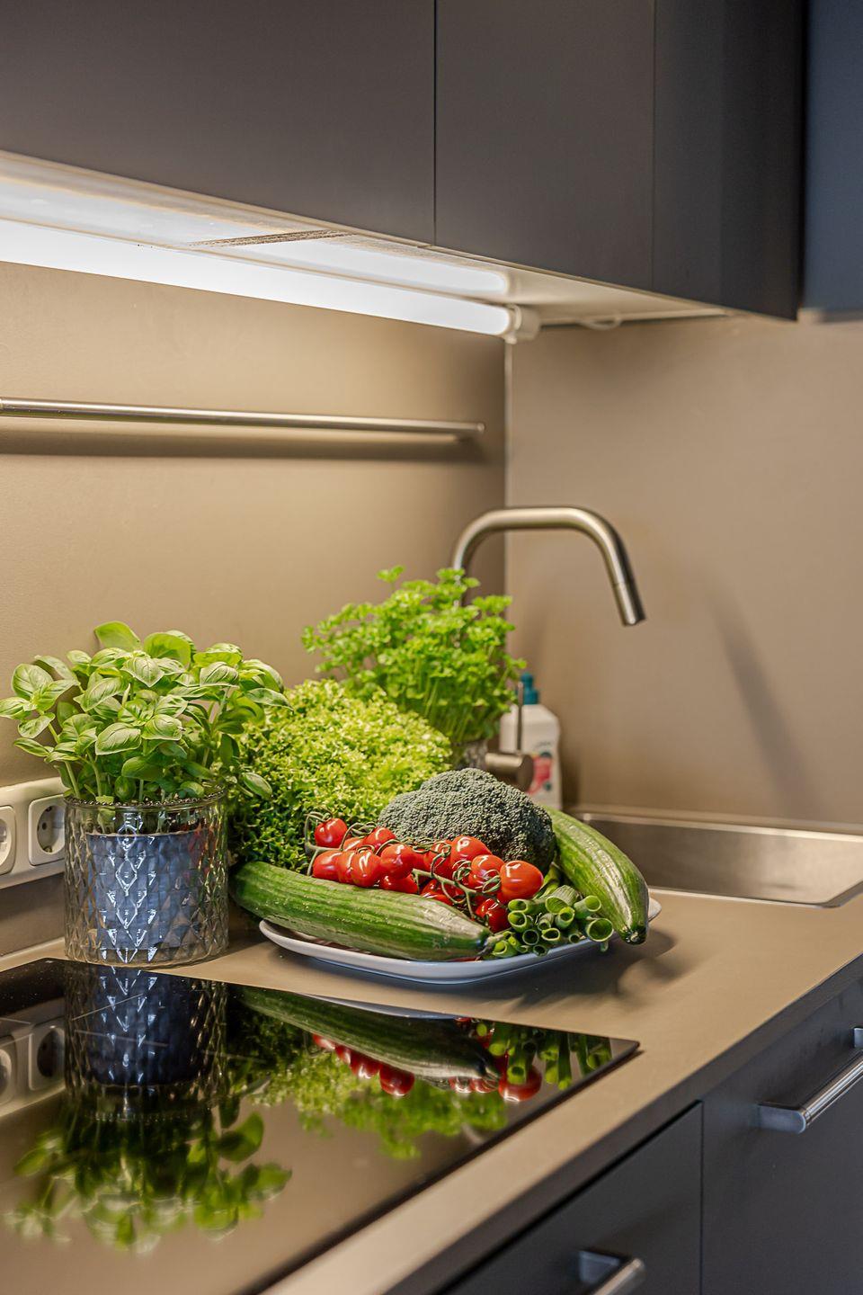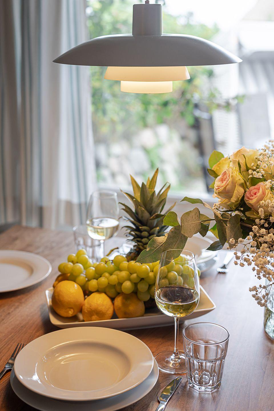 Im Erdgeschoss öffnet sich ein heller Wohn- und Essbereich, in dem nordische Zurückhaltung und gemütliche Eleganz perfekt harmonieren. Eine komfortable Sofalandschaft lädt zu entspannten Stunden ein, während der angrenzende Essplatz mit Blick in den Garten den idealen Rahmen für gemeinsame Mahlzeiten bietet. Die offene Küche ist modern ausgestattet – mit Spülmaschine, Backofen, Nespressomaschine und allem, was Sie für einen genussvollen Aufenthalt benötigen.
