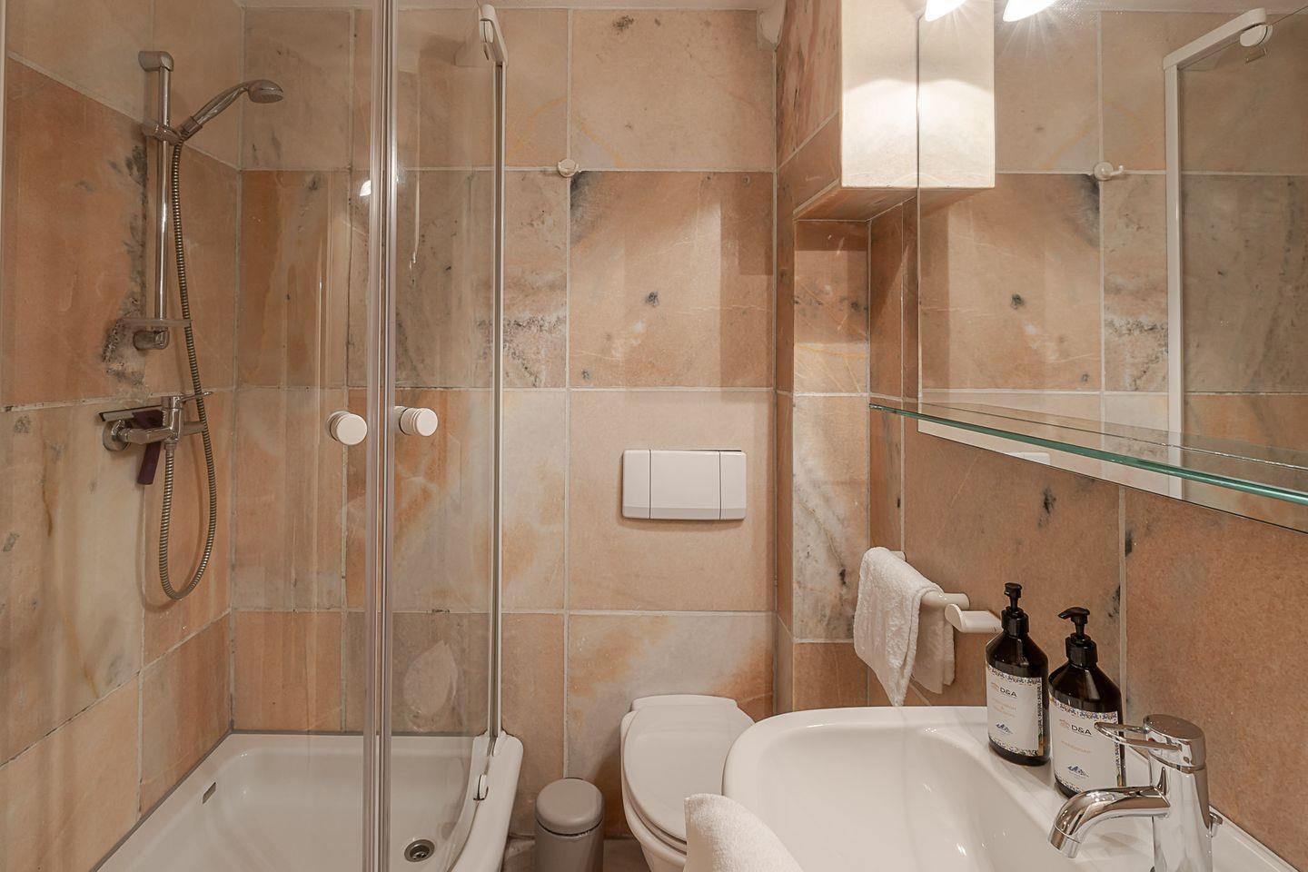 Für zusätzlichen Komfort sorgen zwei Badezimmer: im Erdgeschoss mit Badewanne, im unteren Bereich mit Dusche – beide ohne Fenster, aber gepflegt und vollständig ausgestattet. Eine Waschmaschine steht Ihnen ebenfalls zur Verfügung.