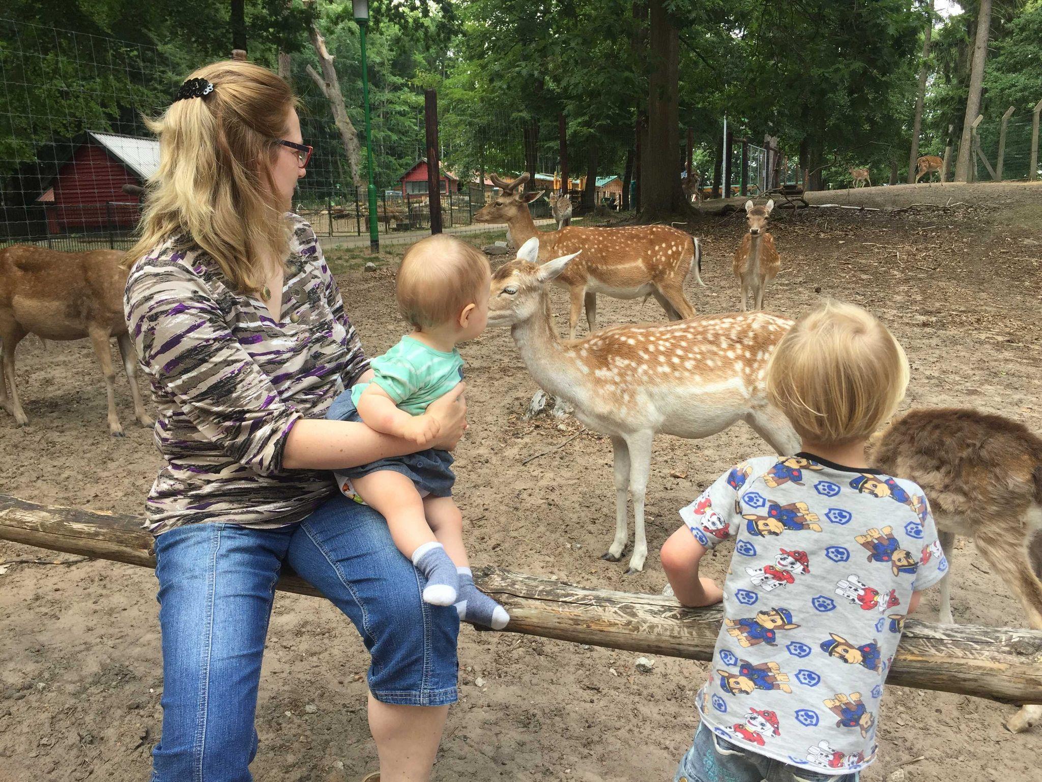 Unsere Ferienwohnung ist baby-und kleinkindgerecht ausgestattet. Überall befindet sich Steckerschutz, ein Treppengitter verhindert das Stürzen. Bei Bedarf kann auch ein Kinderreisebett mit extra Matratze gestellt werden. Ein Hochstuhl, etwas Spielzeug(Spiele für die Großen und Kleinen), Wickelauflage, Toilettensitz, Schemel sind vorhanden. Auf unserem Grundstück gibt es einen kleinen Spielplatz mit Schaukel, Rutsche und Sandkasten. Dieser kann gerne mit genutzt werden.