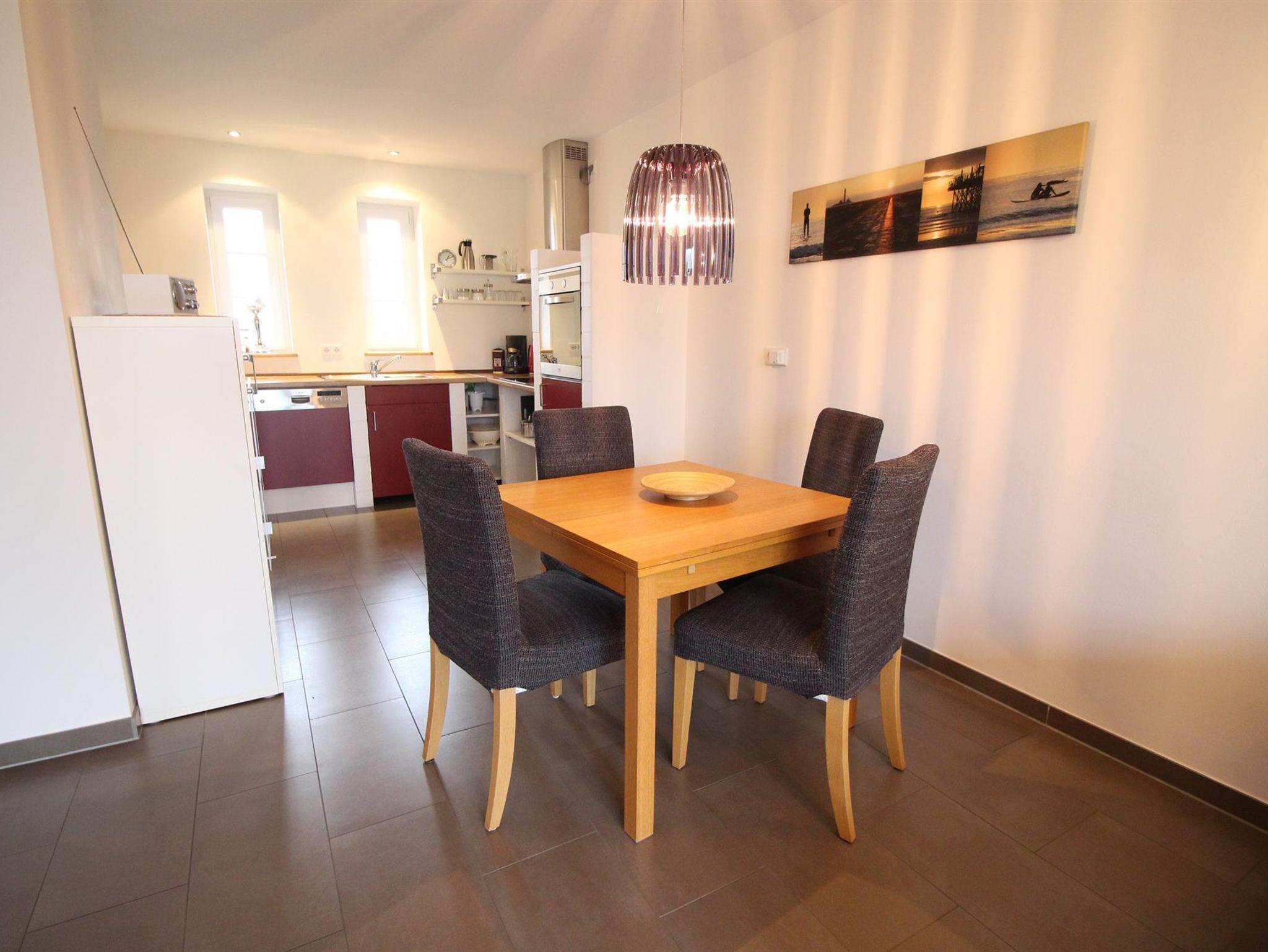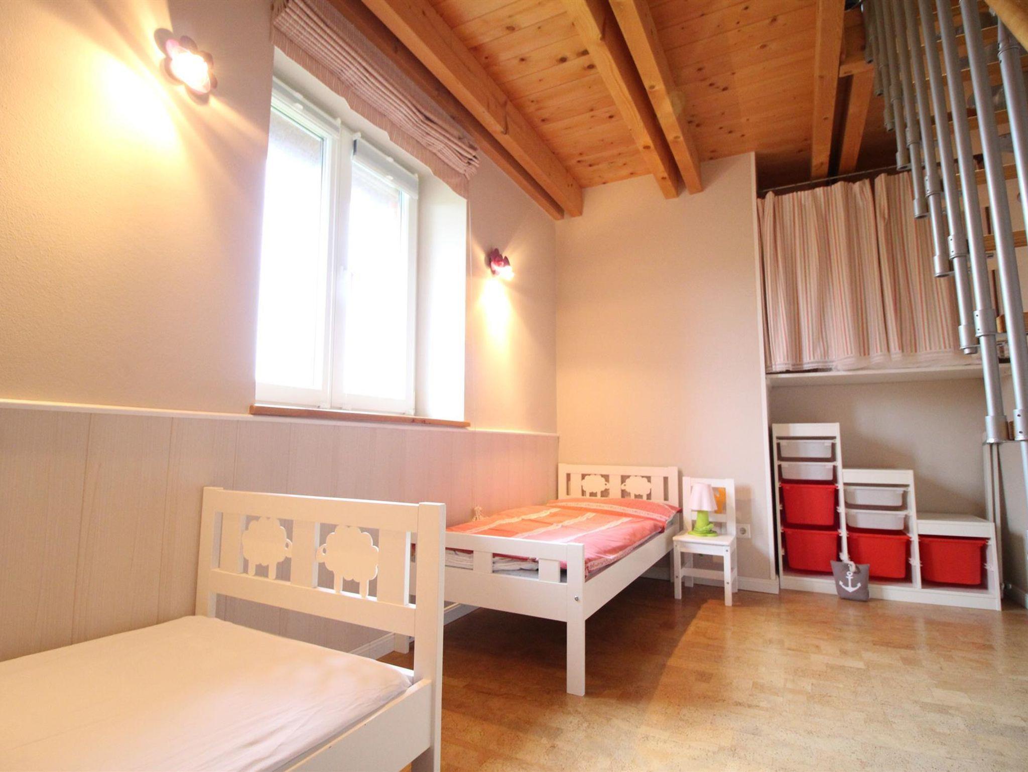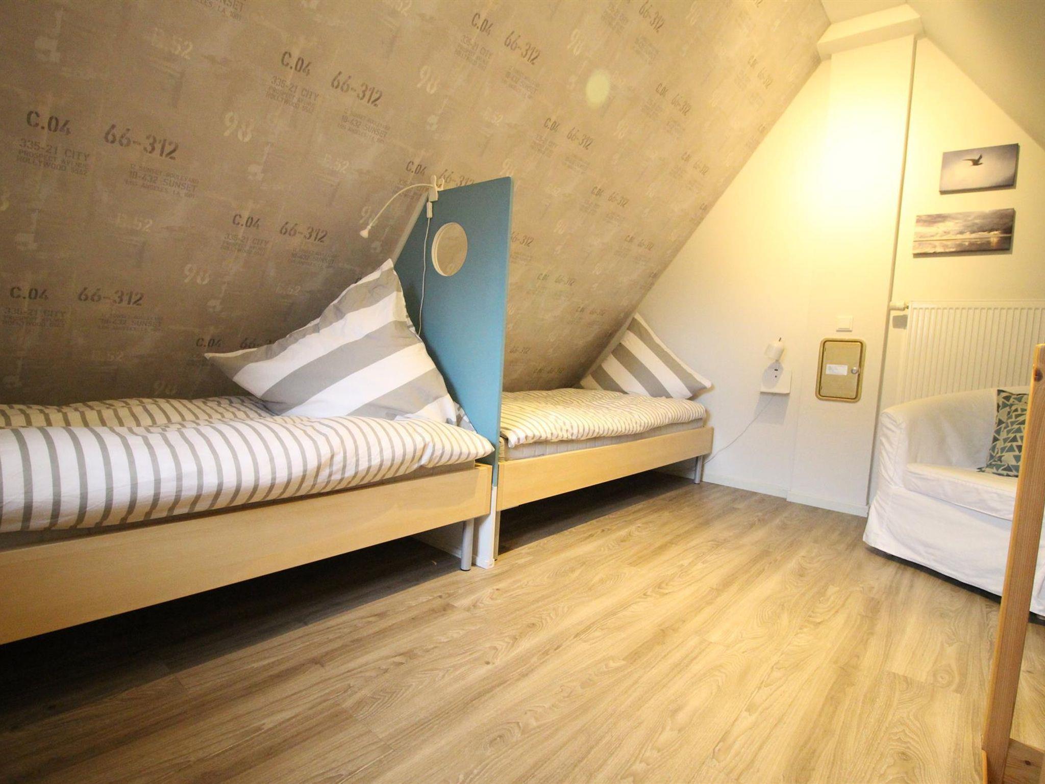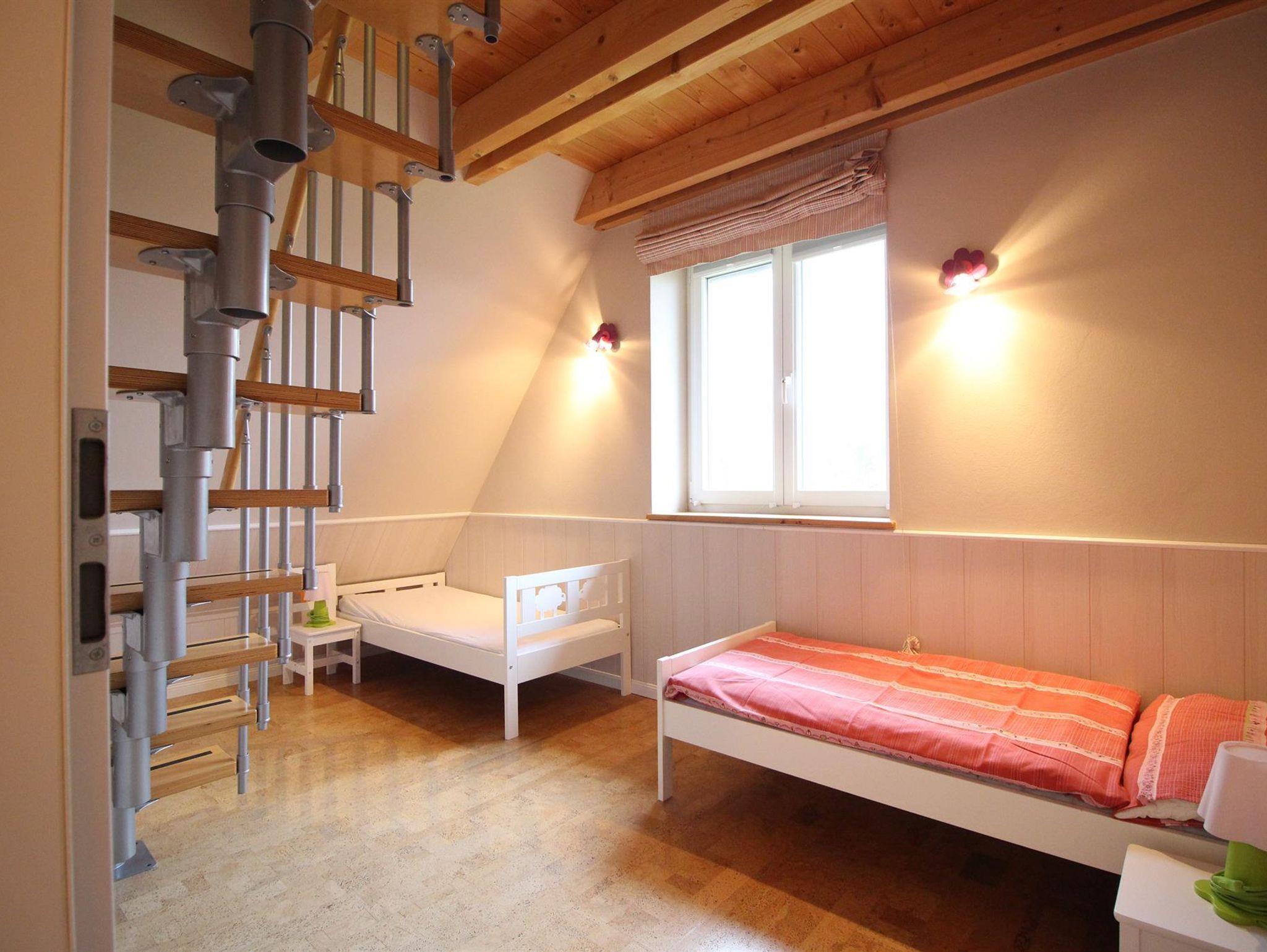 Der Wohn- und Essbereich ist hell und freundlich und hat einen direkten Zugang zu Ihrer Terrasse(Südlage), die mit einem Strandkorb, Holzgartenmöbeln und Sonnenschirm ausgestattet ist. SAT-TV und eine Stereoanlage sind vorhanden. Unter der Treppe finden Sie Platz für Ihre Koffer und Taschen. Der Küchenbereich ist mit Geschirrspüler, Backofen, Ceranfeld, Toaster, Cafissimo, Mixer, Kaffeemaschine, Wasserkocher ausgestattet und mit ausreichend Geschirr bestückt. Im ersten Stock befindet sich ein Bad mit Dusche und WC.(Haarfön,Handseife) Der Schlafraum ist mit einem Doppelbett (160 cm x200 cm) ausgestattet. Das Zimmer für Kleinkinder ist mit zwei Betten (70 cm x160 cm) eingerichtet und hat genügend Platz um Spielsachen und Bücher zu verstauen. Im zweiten Stockwerk befindet sich ein Schlafraum mit zwei Einzelbetten (90 cm x 200 cm) Paterre befindet sich ein Flur und ein extra WC.Im Sommer sind die Fenster mit Mückenschutz versehen.