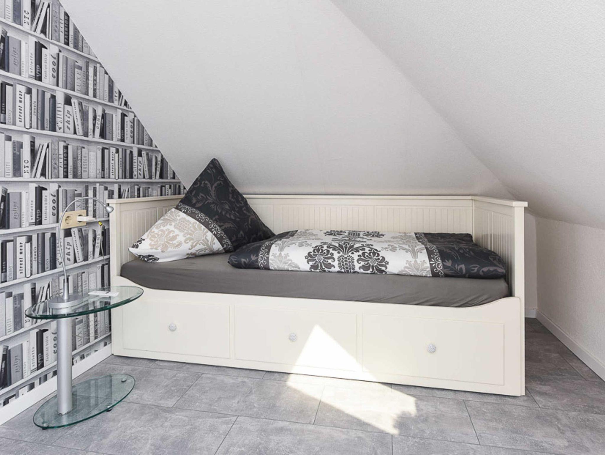 Die Schlafräume 2 und 3 befinden sich außerhalb der eigentlichen Ferienwohnung und werden über den Hausflur erreicht, der allerdings wiederum ausschließlich von den Gästen bewohnt wird.