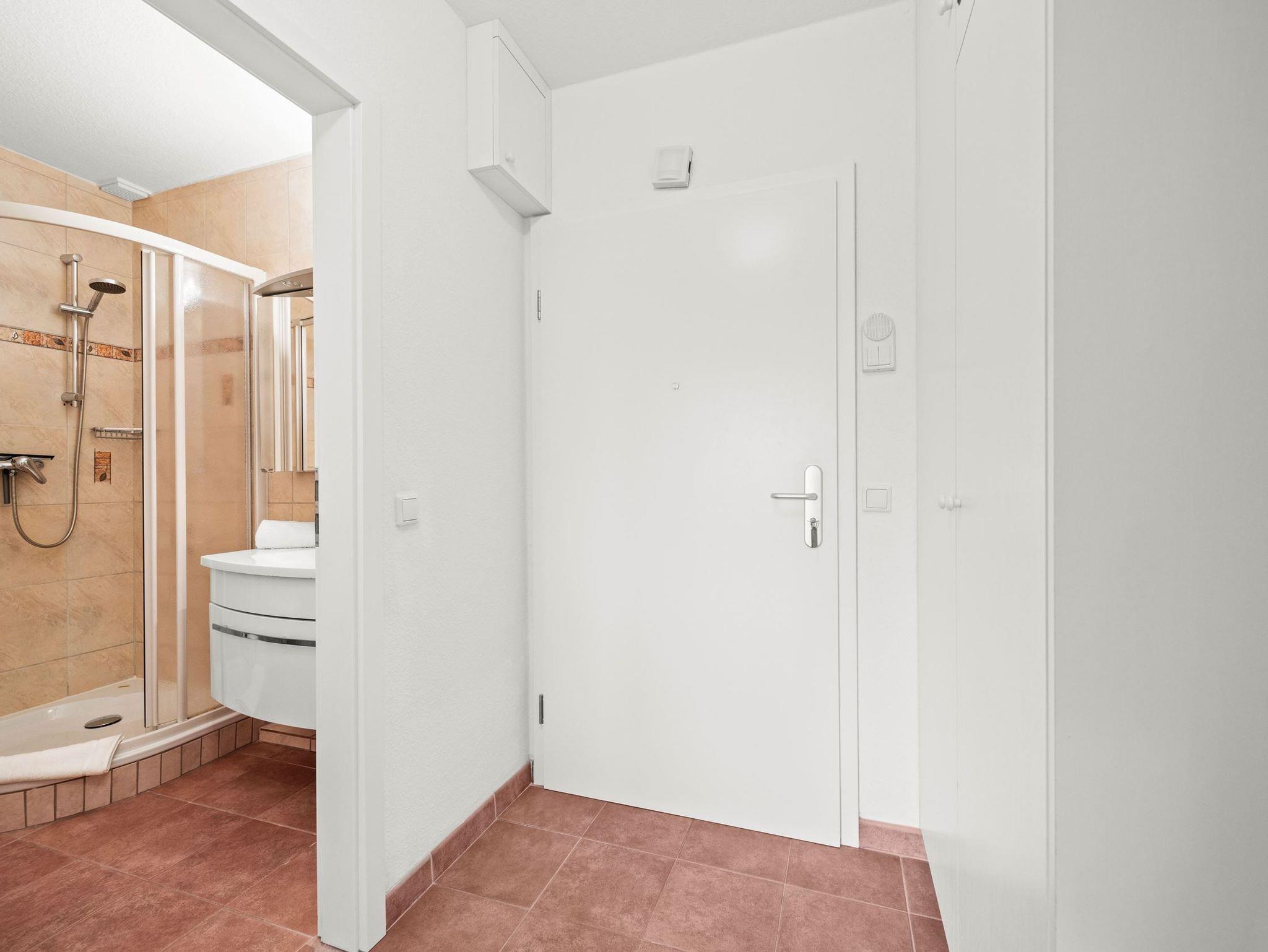 Die Unterkunft liegt im 1. Obergeschoss und hat einen großen, möblierten Balkon nach Osten. Ausgestattet mit Flachbildschirm und Radio im Wohnzimmer. Die Einbau-Küche ist mit Ceran-Kochfeld und Mikrowelle. Die Wohnung ist außerdem mit einem Internetzugang ausgestattet (gebührenfrei). Zudem steht Ihnen ein Telefon zur Verfügung, die Anrufe in das Deutsche Festnetz sind gebührenfrei für Sie. Zu der Wohnung gehört der Garagenstellplatz Nr. 11 auf der Palette (Bis 1,70 Meter Höhe). Die maximale Fahrzeugbreite beträgt 1,90 Meter, die maximale Fahrzeuglänge 5,00 Meter und die maximale Spurweite beträgt 1,85 Meter.