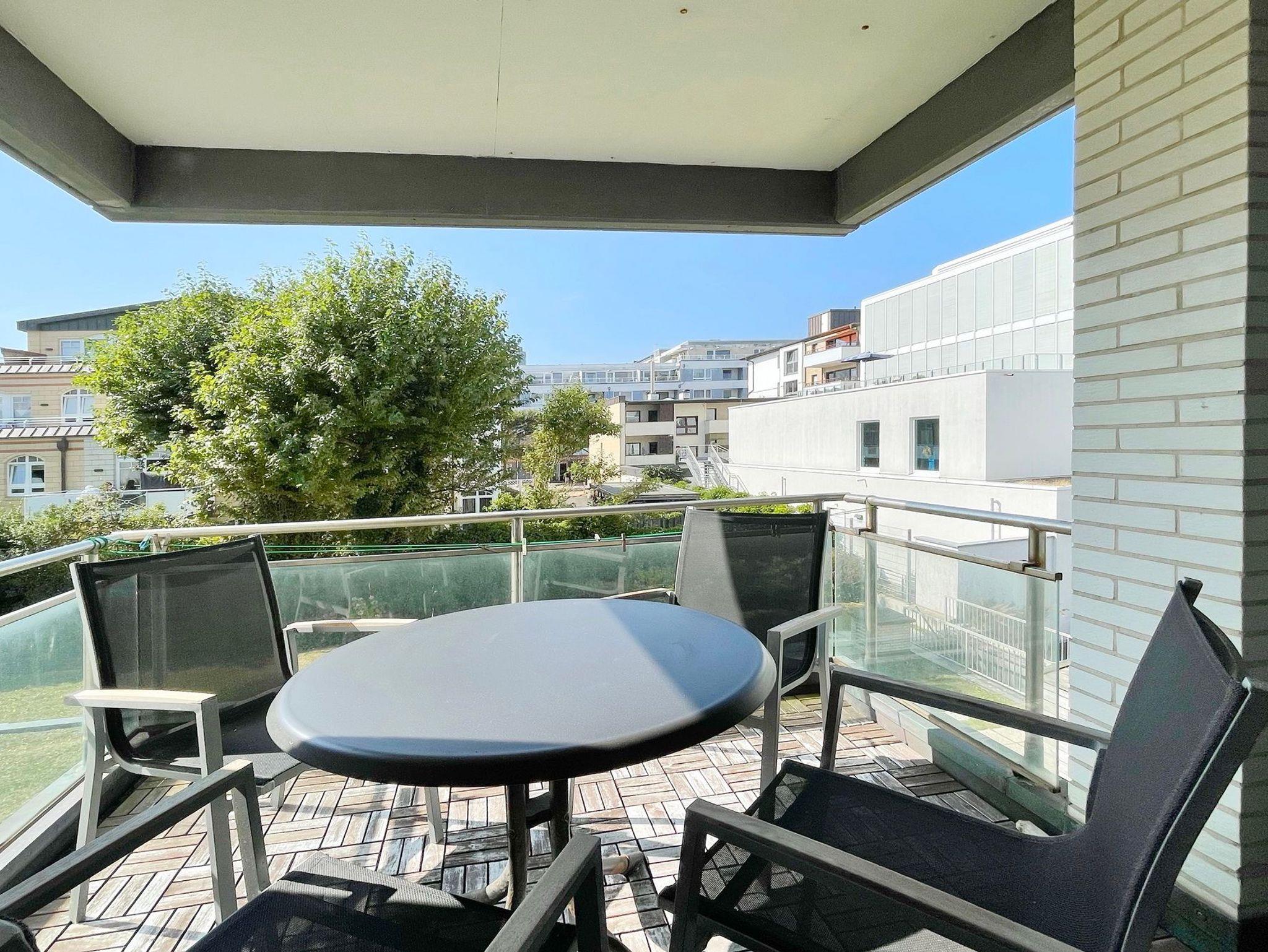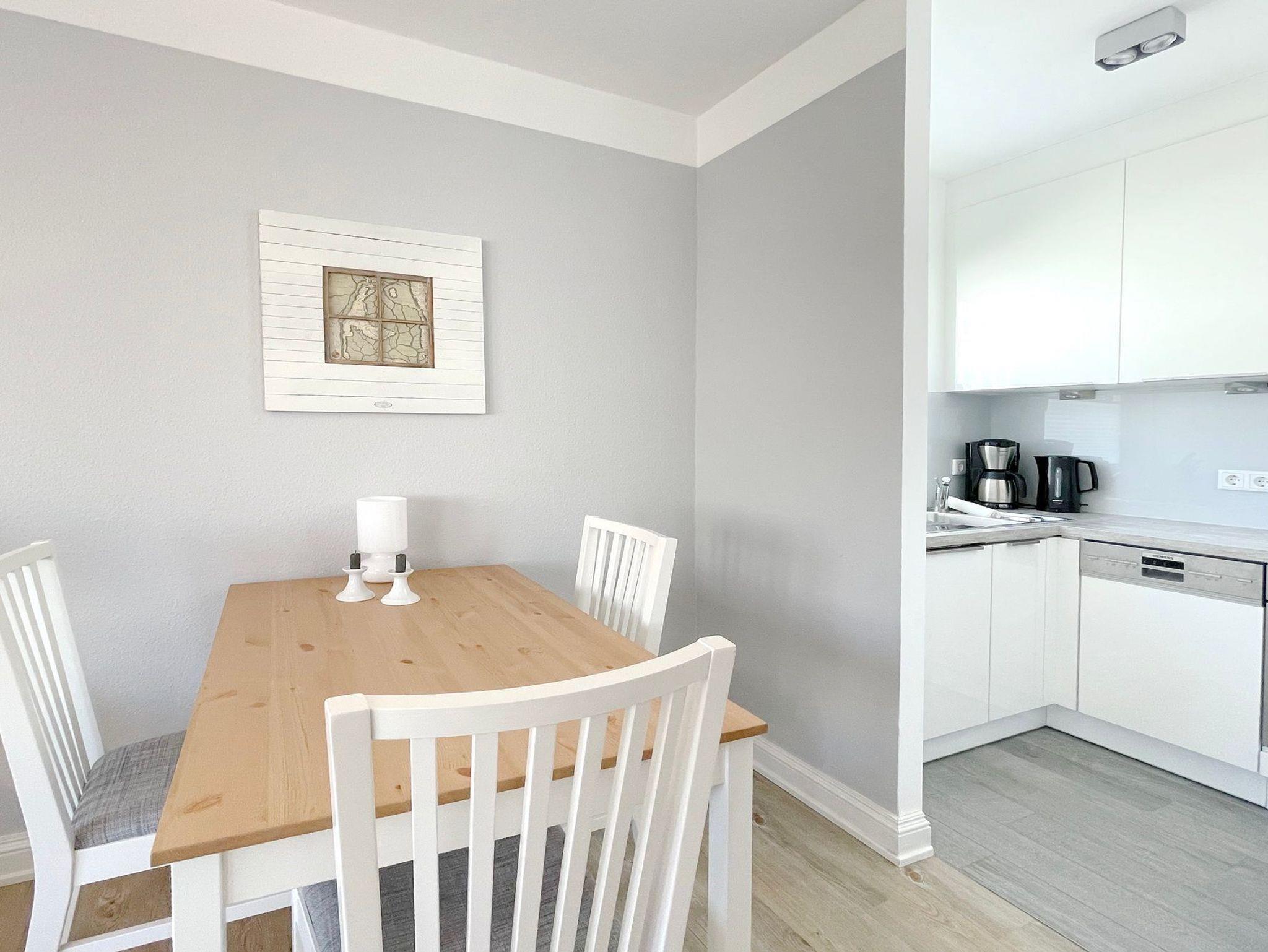Modernes City-Appartement in zentraler Lage von Westerland mit Balkon und offenem Küchenbereich.