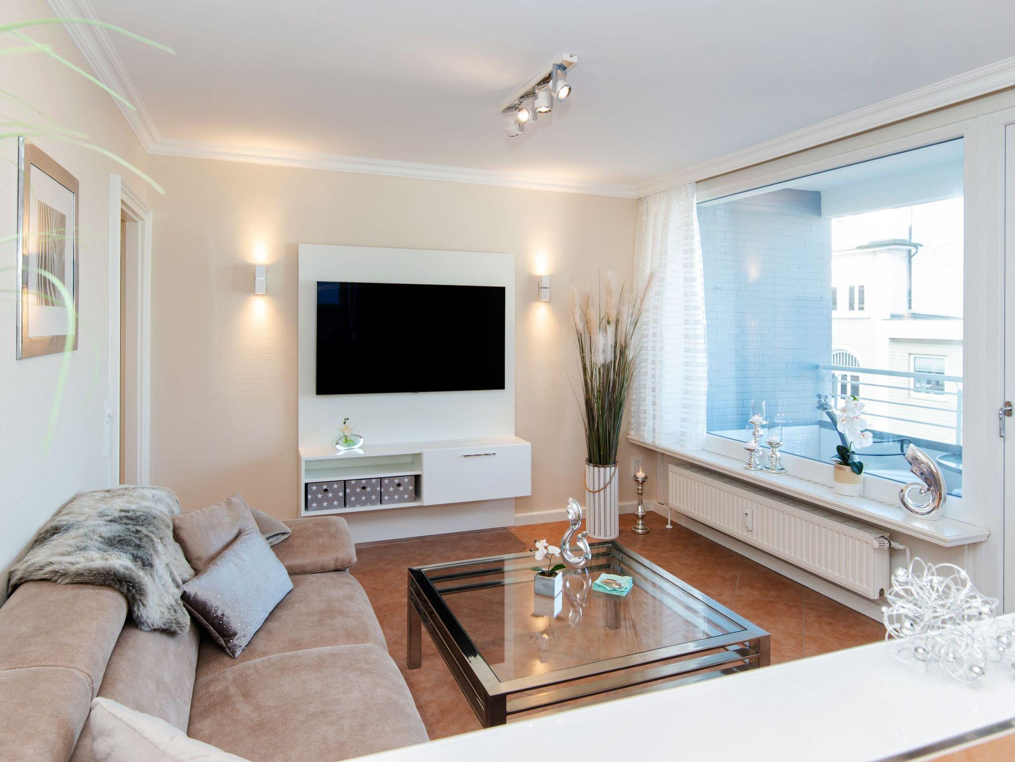 Diese großzügige 2-Zimmer-Nichtraucher-Ferienwohnung liegt zentral in der Fußgängerzone nur ca. 100 Meter vom Hauptstrand und der Kurpromenade entfernt. Die exklusiv ausgestattete Eckwohnung hat eine Größe von ca. 55 qm, befindet sich in der 2. Etage des Appartementhauses und ist zur Nordostseite hin ausgerichtet.