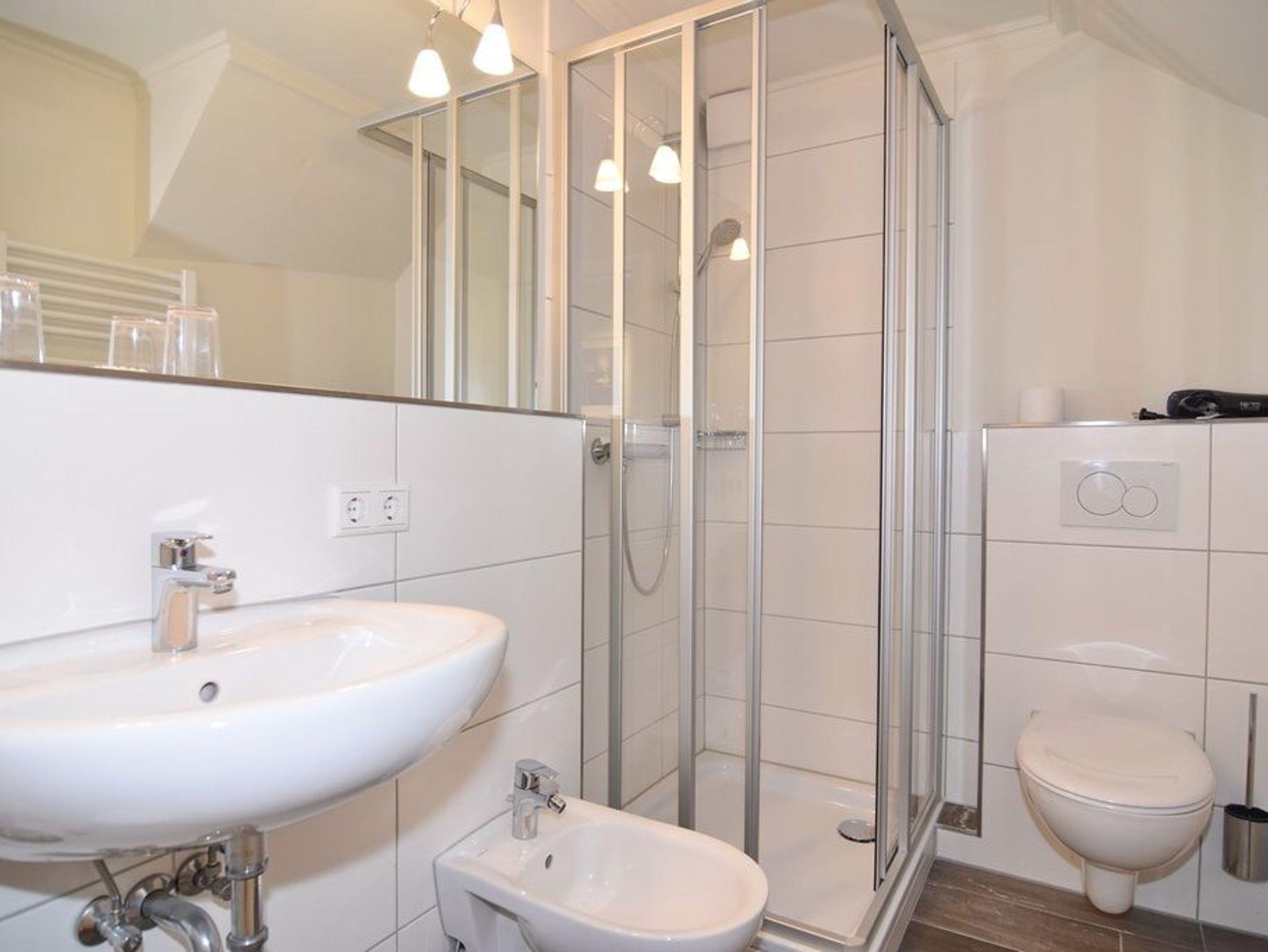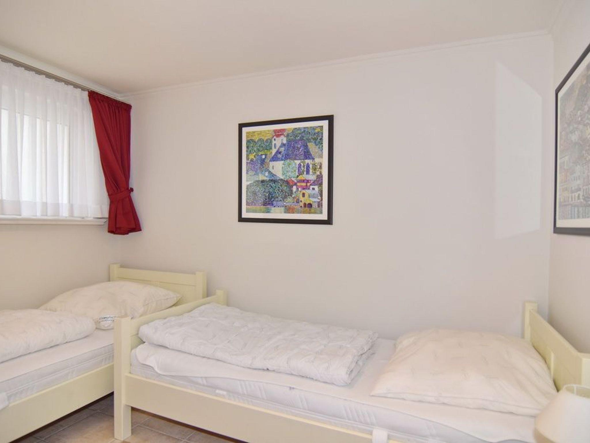 3-Zimmer-Ferienwohnung mit NW-Terrasse und Gartenmöbeln, Strandkorb (Apr.-Okt.).[nbsp][nbsp]Nichtraucher-Whg.! Ca. 70m². EG: Wohnzimmer mit Couchecke und 2 Sesseln sowie Essplatz für 4 Personen, Kabel-TV und Stereoanlage, W-LAN (ohne Gewähr). Separate Küche mit Geschirrspüler und Mikrowelle. Gäste-WC und Diele UG: 1 Schlafzimmer mit Doppelbett und TV, 1 Schlafzimmer mit 2 Einzelbetten, neues Badezimmer mit Dusche/WC und Bidet. Schwimmbad, Sauna im Haus. Garage. Münzwaschmaschine und Trockner. Bettwäsche und Handtücher sind zur Anreise aufgezogen! Tierhaltung ist nicht gestattet.