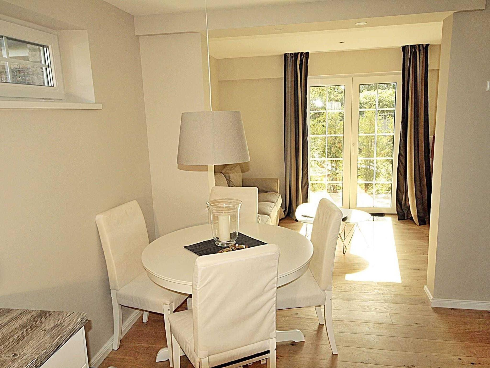 Der Einrichtungsstil ist hell und freundlich. Sie erwartet ein modernes Wohlfühl-Ambiente mit hellem Landhausdielenparkett, Flachbildfernsehern im Wohnzimmer und Schlafzimmer, einem Bad aus Naturstein, einem Gäste-WC und Fußbodenheizung.