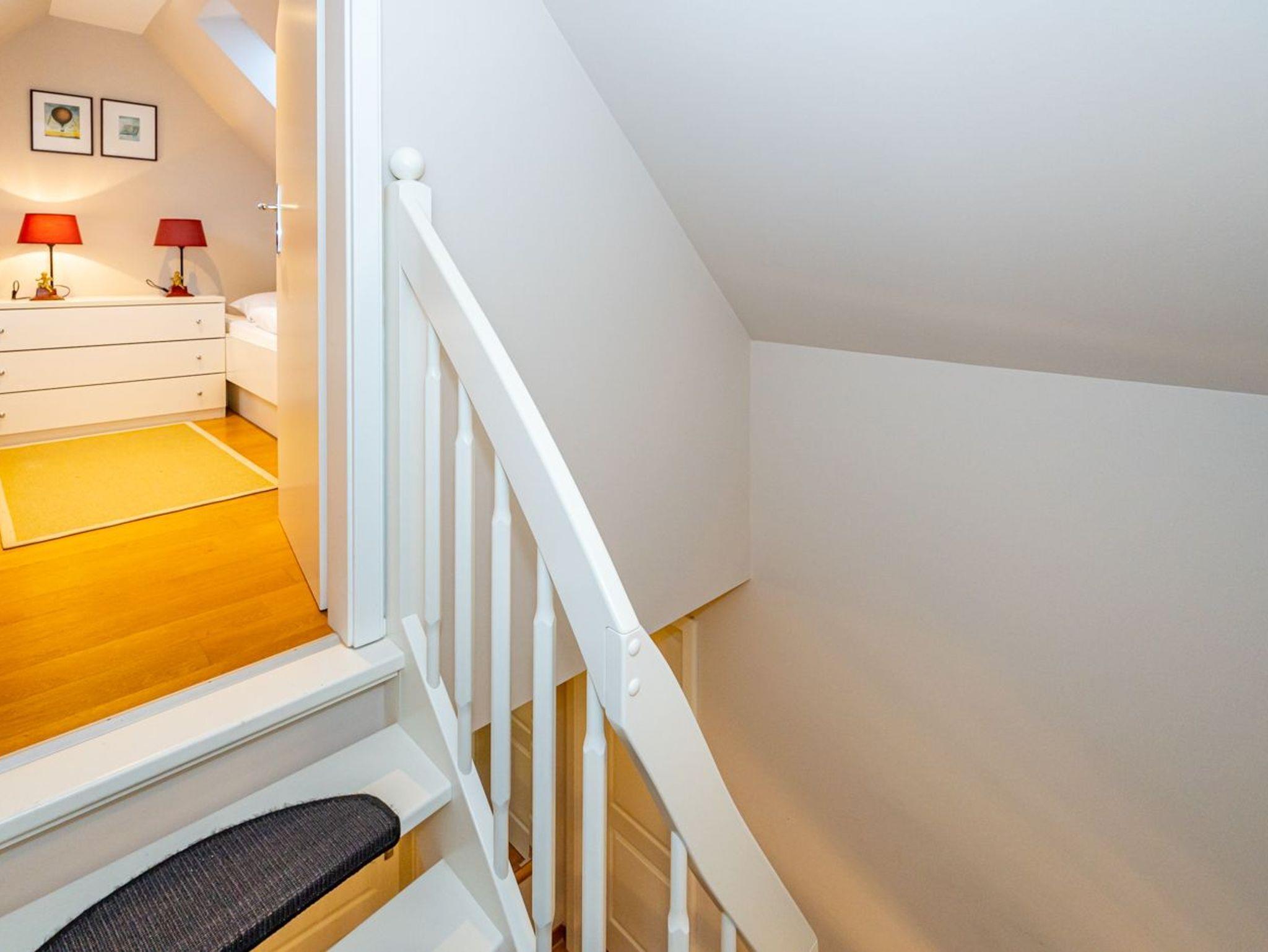 Im 1. Obergeschoss befinden sich ein großzügiges Schafzimmer mit Doppelbett (0,90 x 2,00 m), Kleiderschrank und TV, sowie ein Zweibett-Schlafzimmer (1,00 x 2,00 m) mit Kleiderschrank.