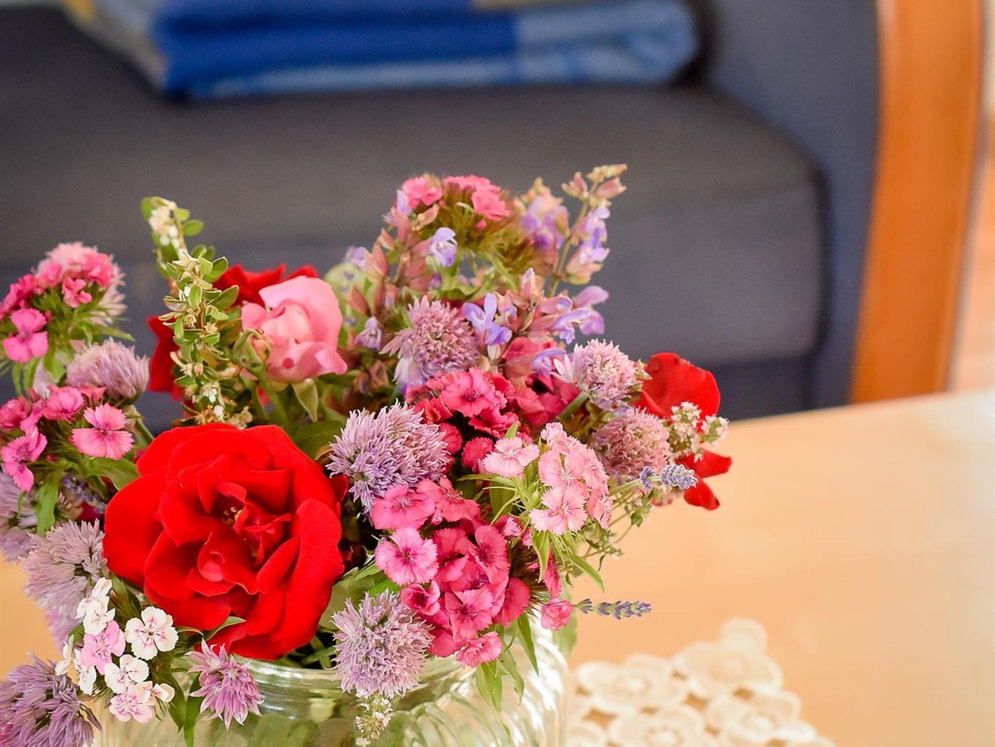 Die Ferienwohnung Kornblume für bis zu 6 Personen liegt im Erdgeschoss, ist vollständig barrierefrei gestaltet und damit auch für Rollstuhlfahrer bestens geeignet. Der große kombinierte Wohn-, Koch- und Essbereich bietet viel Platz für gemeinsame Stunden und schafft eine behagliche Atmosphäre. Die Wohnung verfügt über ein großzügiges Schlafzimmer mit Doppelbett und Etagenbett sowie ein weiteres Schlafzimmer mit zwei Einzelbetten, sodass bis zu 6 Personen bequem Platz finden. Das große, rollstuhlgerechte Bad sorgt für zusätzlichen Komfort. Hier könnt ihr neue Kraft tanken, in ein gutes Buch eintauchen oder einfach auf dem Sofa die Gedanken treiben lassen. Die Ferienwohnung Kornblume vereint Gemütlichkeit, Komfort und barrierefreie Erholung – ideal für Familien oder Paare, die eine entspannte Auszeit mitten im Grünen suchen.