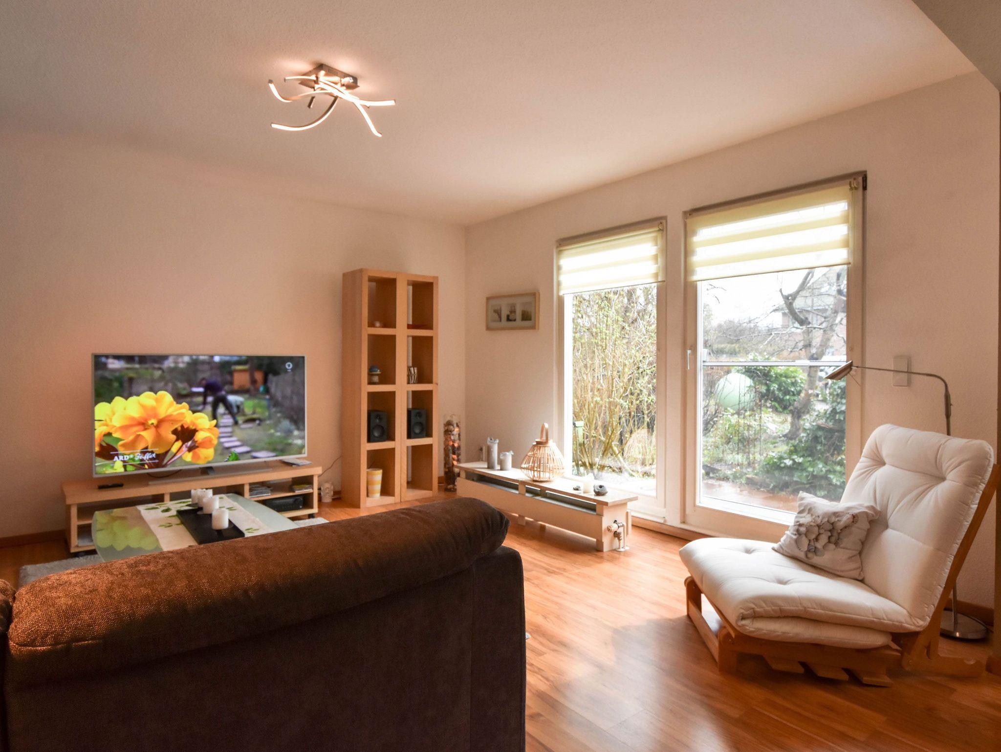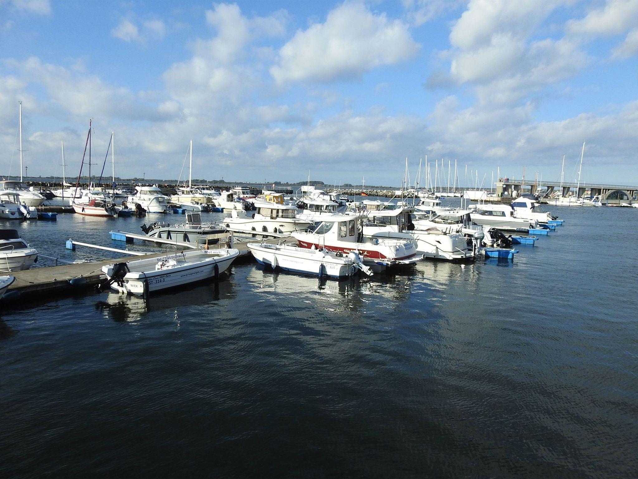 Die Ferienwohnung Ostseestern in Wiek bietet komfortables Wohnen mit 2 Schlafzimmern und Terrasse nur 300 Meter vom Hafen entfernt.