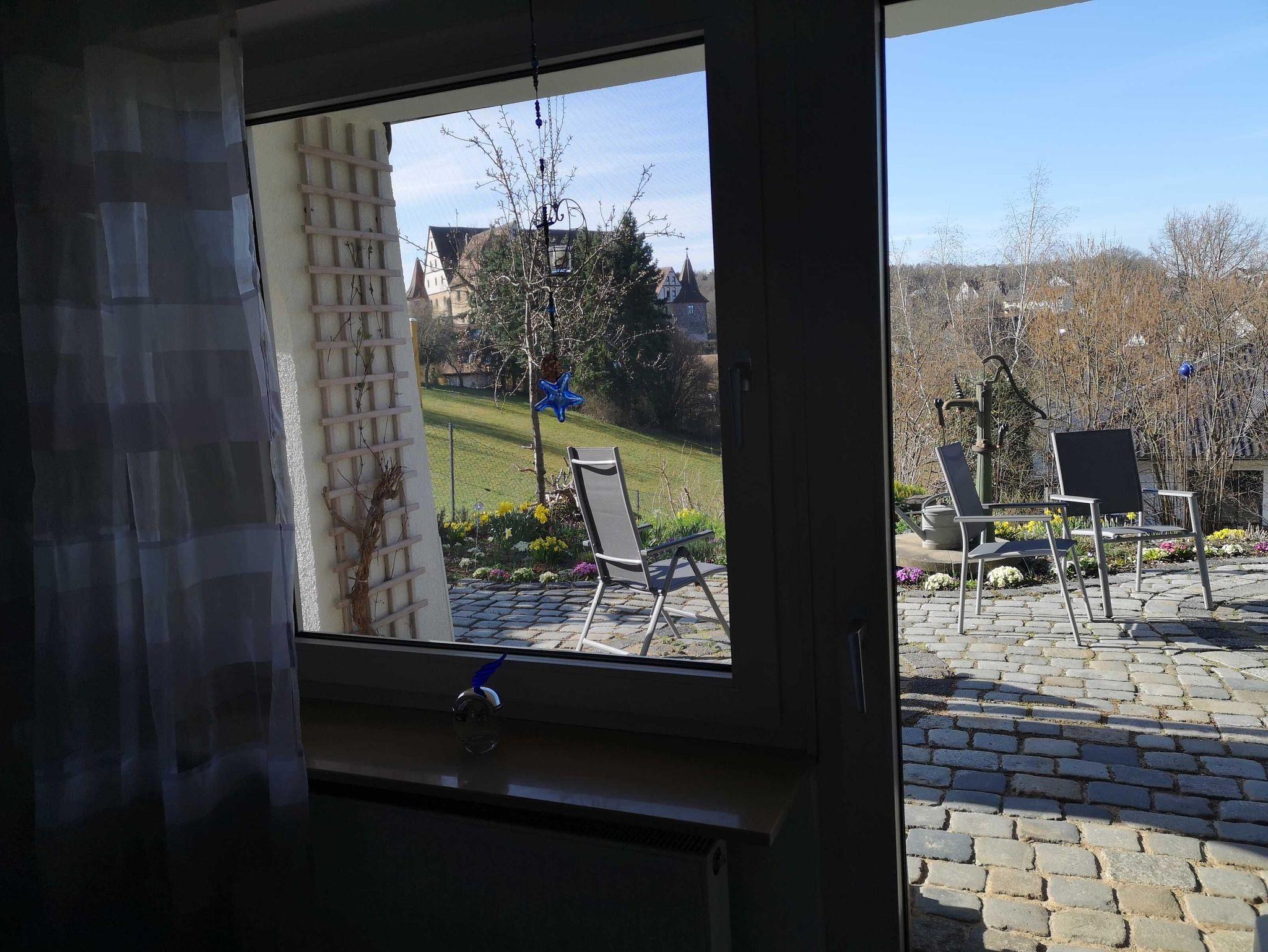 Genießen Sie Ihren Urlaub in unserer sonnigen und großzügigen Terrassenwohnung mit traumhaftem Blick auf Schloss Wiesenthau.