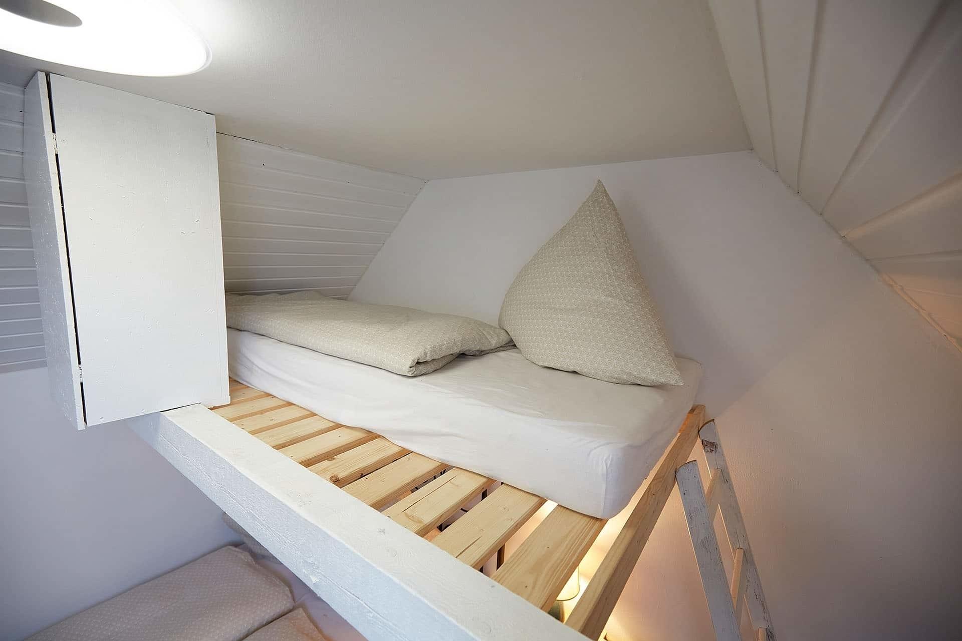Unser beliebtes Ferienhaus ist aufgeteilt in drei Etagen, eine mit Doppelschlafzimmer, dem Dachgeschoß mit Doppelschlafzimmer und Schlafempore, sowie 2 Wohnschlafzimmern mit jeweils einer Schlafcouch. Bei uns finden Familien und Gruppen mit bis zu 6 Personen ein erholsames Urlaubsdomizil. Ideal für Familien mit Kindern und eventuell mitreisende Großeltern oder befreundete Familien - aber gleichermaßen für Pärchen und kleine Grüppchen.