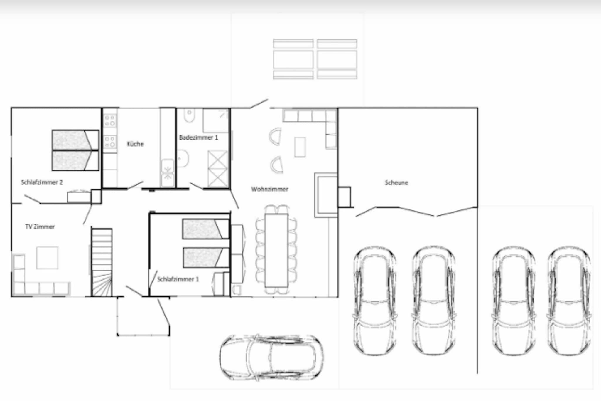 Parterre: (Eingang, Diele, Fernsehzimmer(TV, Sitzecke), Küche(Wasserkocher, Toaster, Kochherd(Ceranfeld), Kochherd(Ceranfeld), Kaffeemaschine, Backofen, Spülmaschine, Kühlschrank, Tiefkühlschrank), Wohn/Esszimmer(TV, Esstisch(14 Personen), Kaminofen, Sitzecke), Schlafzimmer(Doppelbett(Boxspring)), Schlafzimmer(Einzelbett(Boxspring), Einzelbett(Boxspring)), Badezimmer(Dusche, Waschbecken, Toilette)) In der 1. Etage: (Schlafzimmer(Doppelbett(Boxspring), Doppelbett(Boxspring), Kinderbett), Schlafzimmer(Einzelbett(Boxspring), Einzelbett(Boxspring)), Schlafzimmer(Einzelbett(Boxspring), Einzelbett(Boxspring), Doppelbett(Boxspring), Kinderbett), Badezimmer(Badewanne, Dusche, Waschbecken, Toilette), Badezimmer(Dusche, Waschbecken, Toilette)) Abstellraum, Trockner, Babybett, Waschmaschine, Terrasse, Garten, Gartenmöbel, Grill, 5x Parkplatz, Hochstuhl